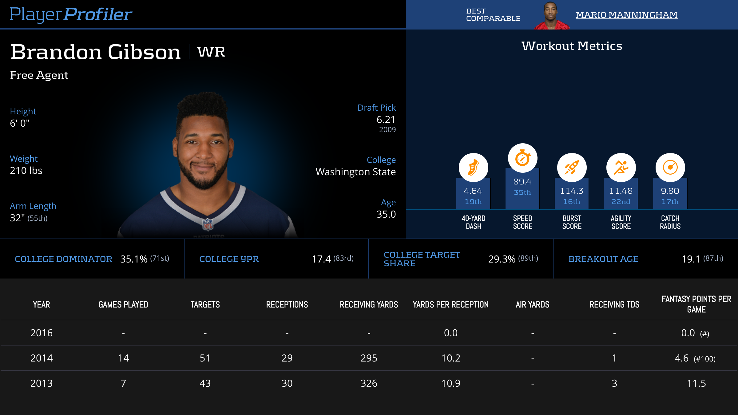 | Year Year | Games Games | Receptions Recs | Receiving Yards Rec Yds | Target Share Tgt Share | Catch Rate Catch Rate | Receiving Touchdowns Rec TDs | Special Teams Yards Special Teams | Age Age | School School |