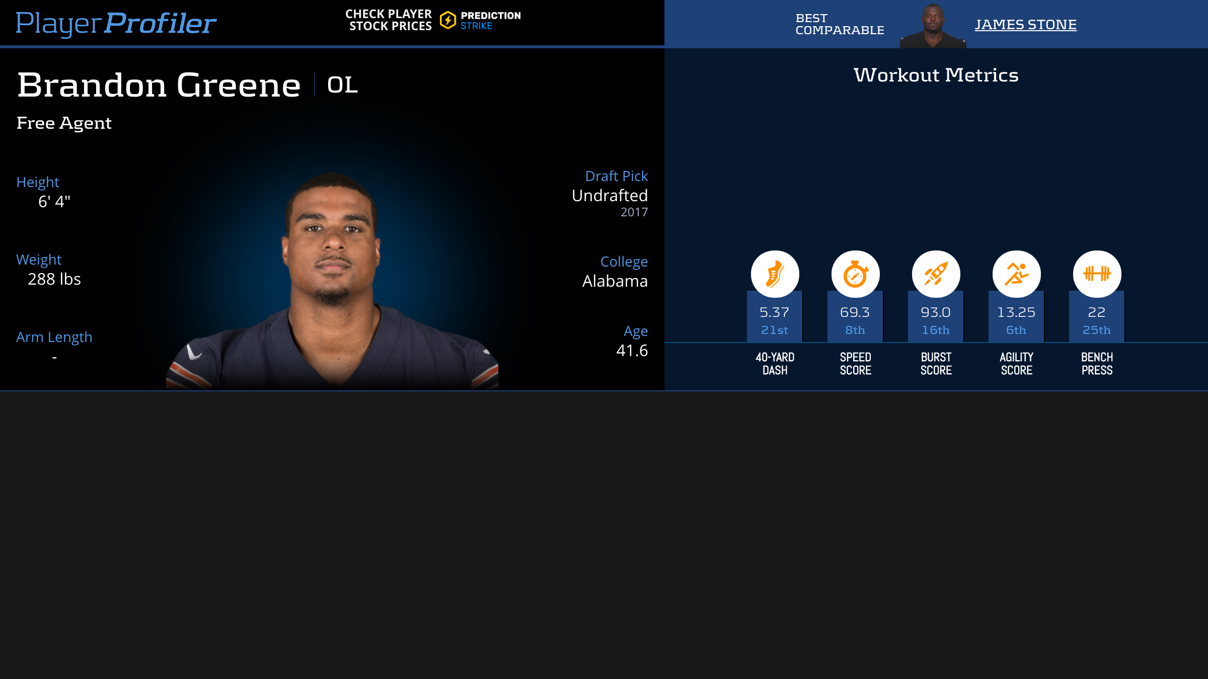 Download all Brandon Greene advanced stats and metrics with Data Analysis.