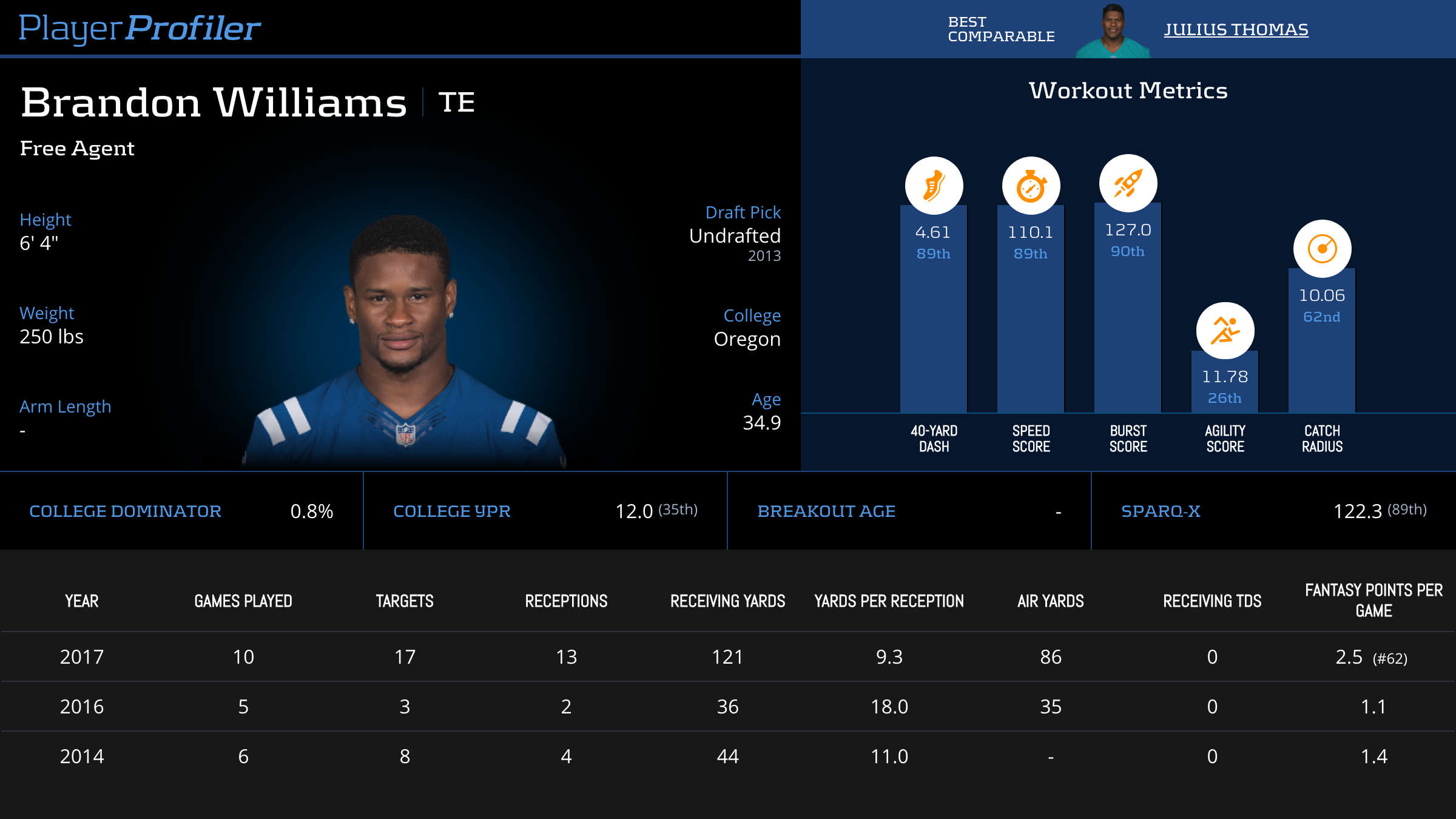Box score statistics such as targets, yards, touchdowns, and fantasy points per target are updated the next day. Advanced stats and metrics are updated later in the week during the NFL season.