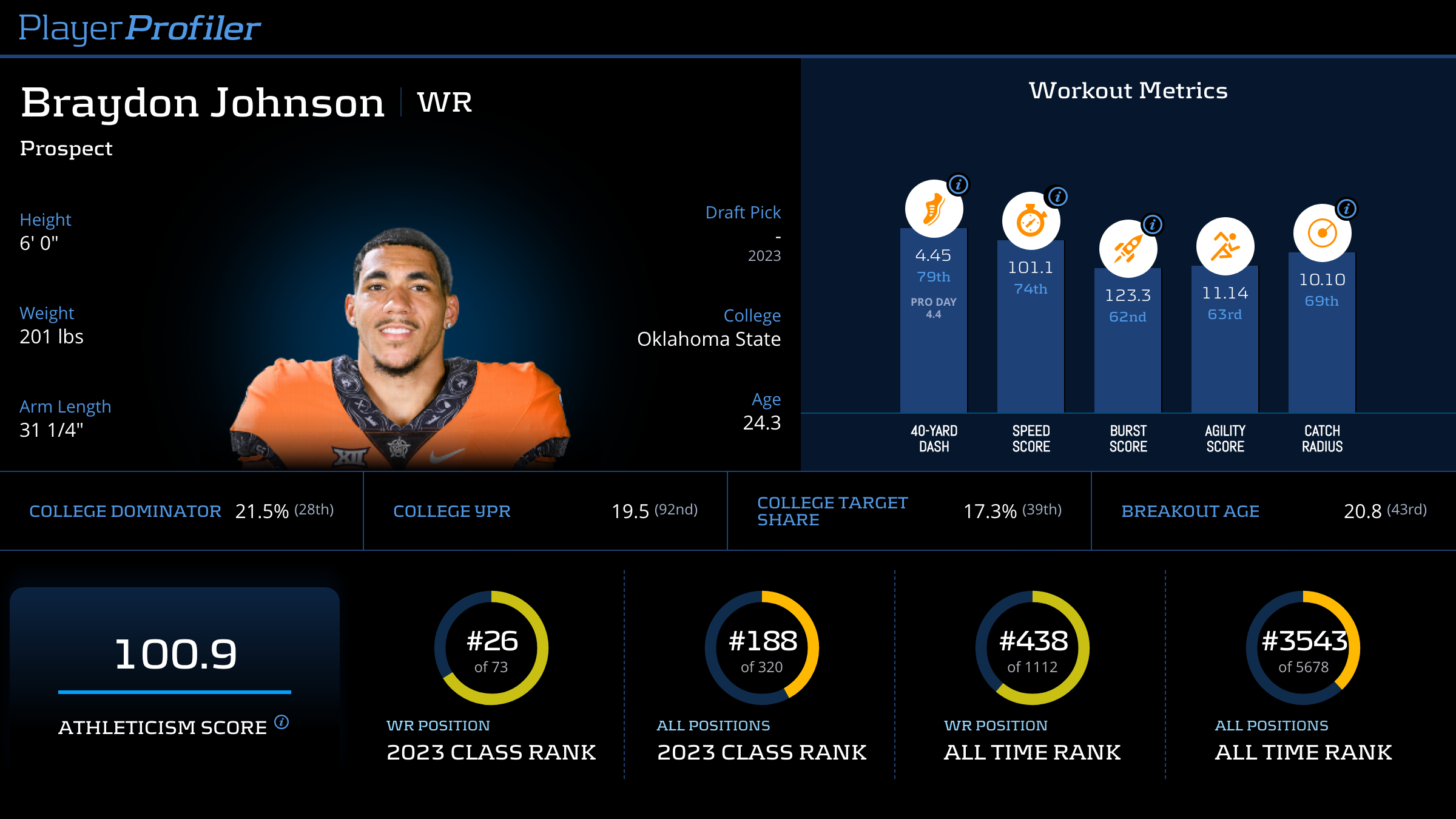Player Popularity Index (PPI) ranks PlayerProfiler page views over the last 30 days. For example, the No. 1 PPI player page is the most frequently visited page in recent weeks.