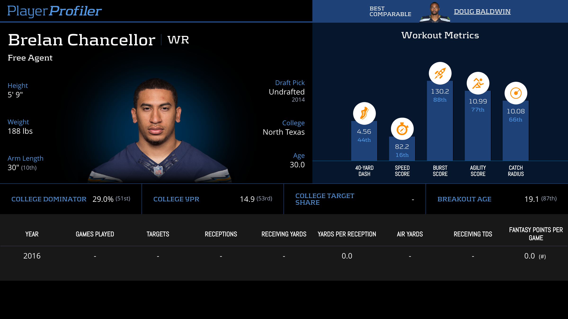 Year Games Tgts Rec Rec Yds YPR Air Yds Rec TD Fantasy Pts/Game