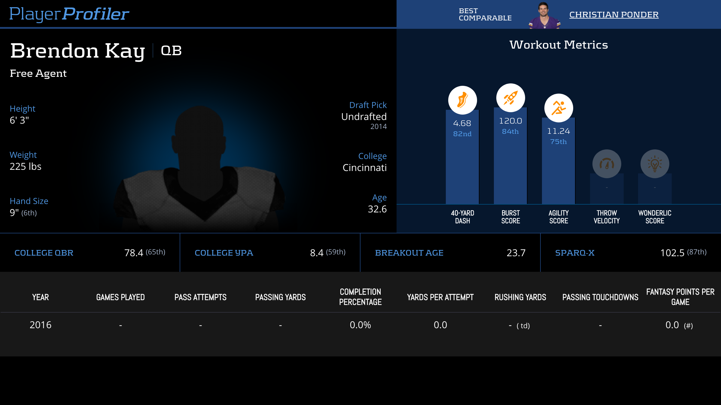 | Year Year | Games Games | Pass Attempts Pass Atts | Passing Yards Pass Yds | Yards Per Attempt YPA | Completion Percentage Comp % | Passing Touchdowns Pass TDs | Rushing Yards Rush Yds | Age Age | School School |