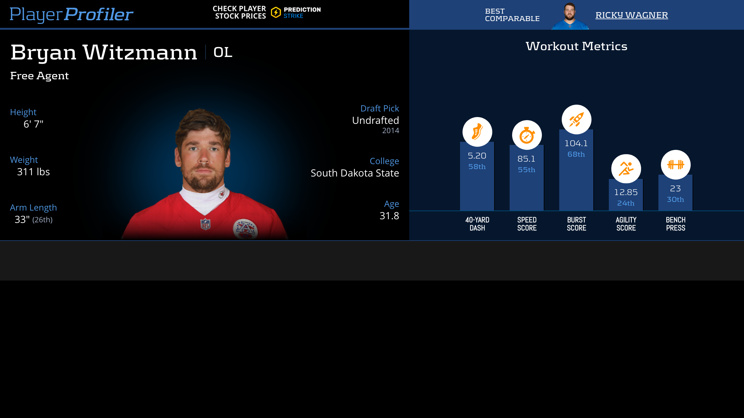 Download all Bryan Witzmann advanced stats and metrics with Data Analysis.