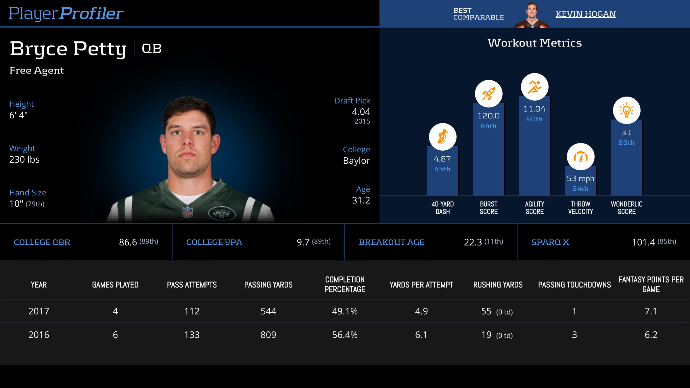 | Year Year | Games Games | Pass Attempts Pass Atts | Passing Yards Pass Yds | Yards Per Attempt YPA | Completion Percentage Comp % | Passing Touchdowns Pass TDs | Rushing Yards Rush Yds | Age Age | School School |