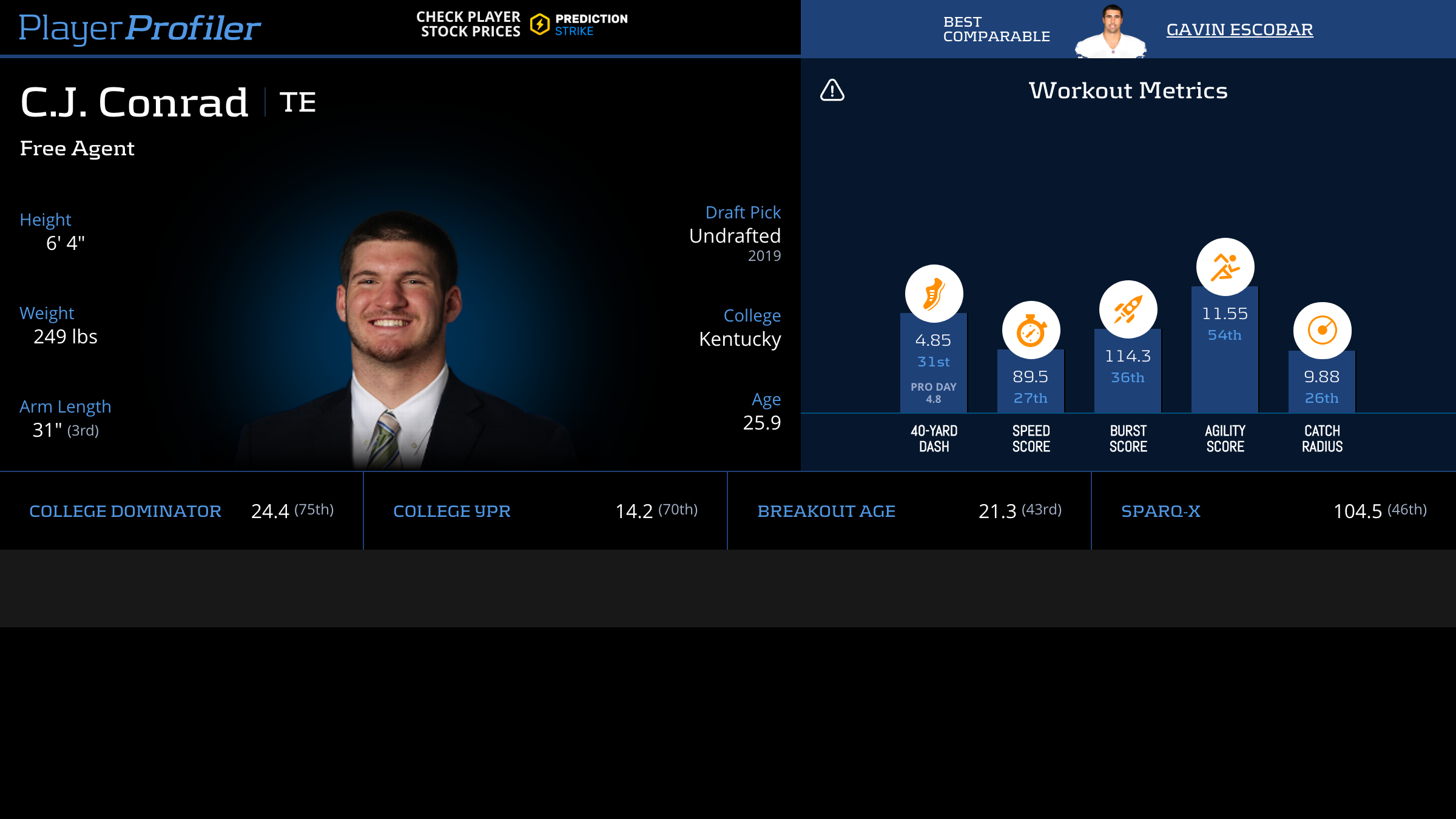 | Year Year | Games Games | Receptions Recs | Receiving Yards Rec Yds | Target Share Tgt Share | Catch Rate Catch Rate | Receiving Touchdowns Rec TDs | Special Teams Yards Special Teams | Age Age | School School |