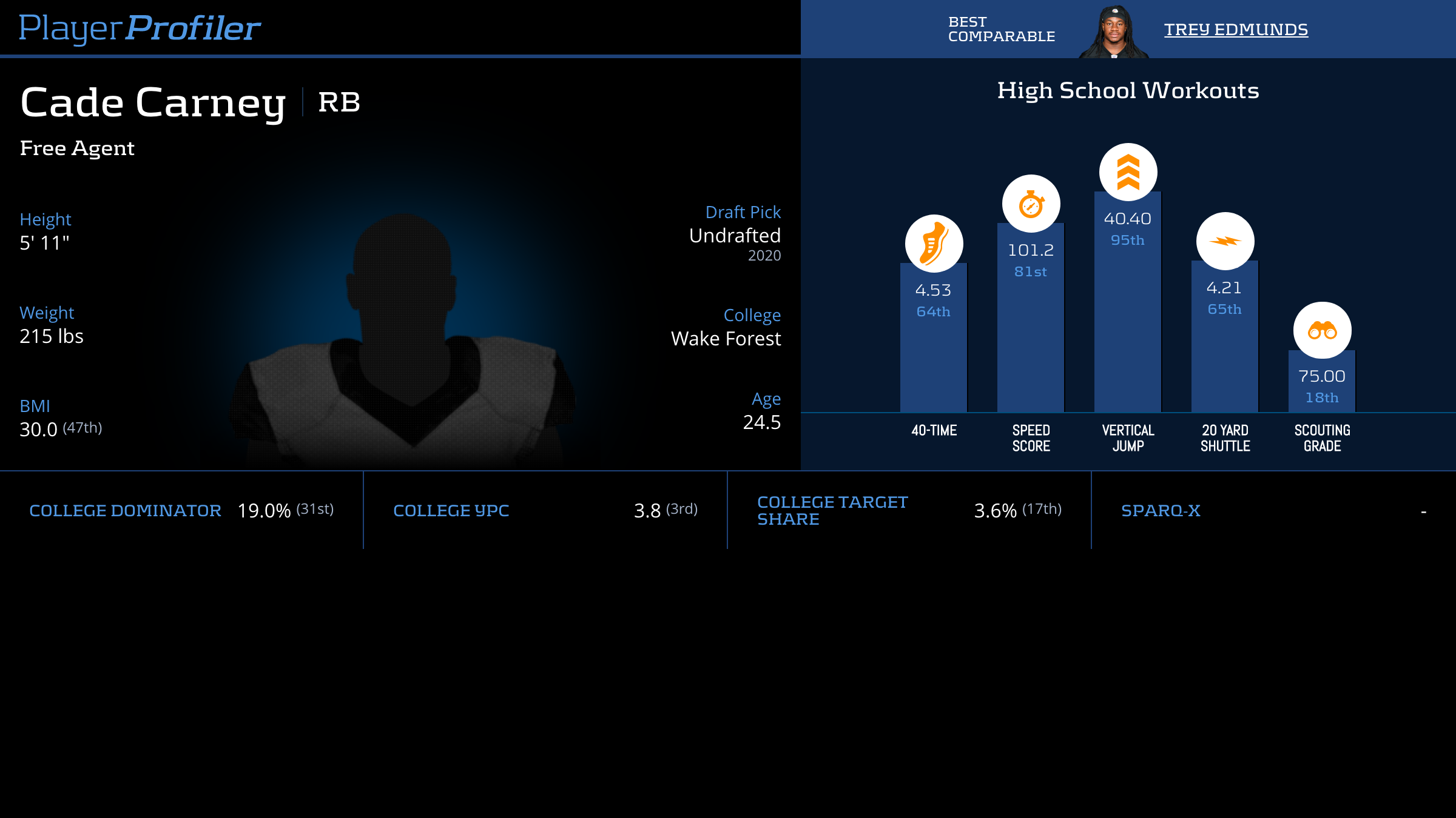 | Year Year | Games Games | Rush Attempts Rush Atts | Rushing Yards Rush Yrds | Total Touchdowns TDs | Receptions Rec | Receiving Yards Rec Yrds | Target Share Tgt Share | Age Age | School School |
