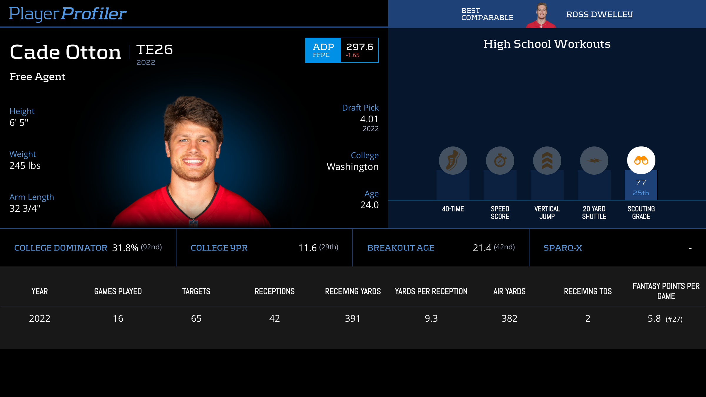 | Year Year | Games Games | Receptions Recs | Receiving Yards Rec Yds | Target Share Tgt Share | Catch Rate Catch Rate | Receiving Touchdowns Rec TDs | Special Teams Yards Special Teams | Age Age | School School |