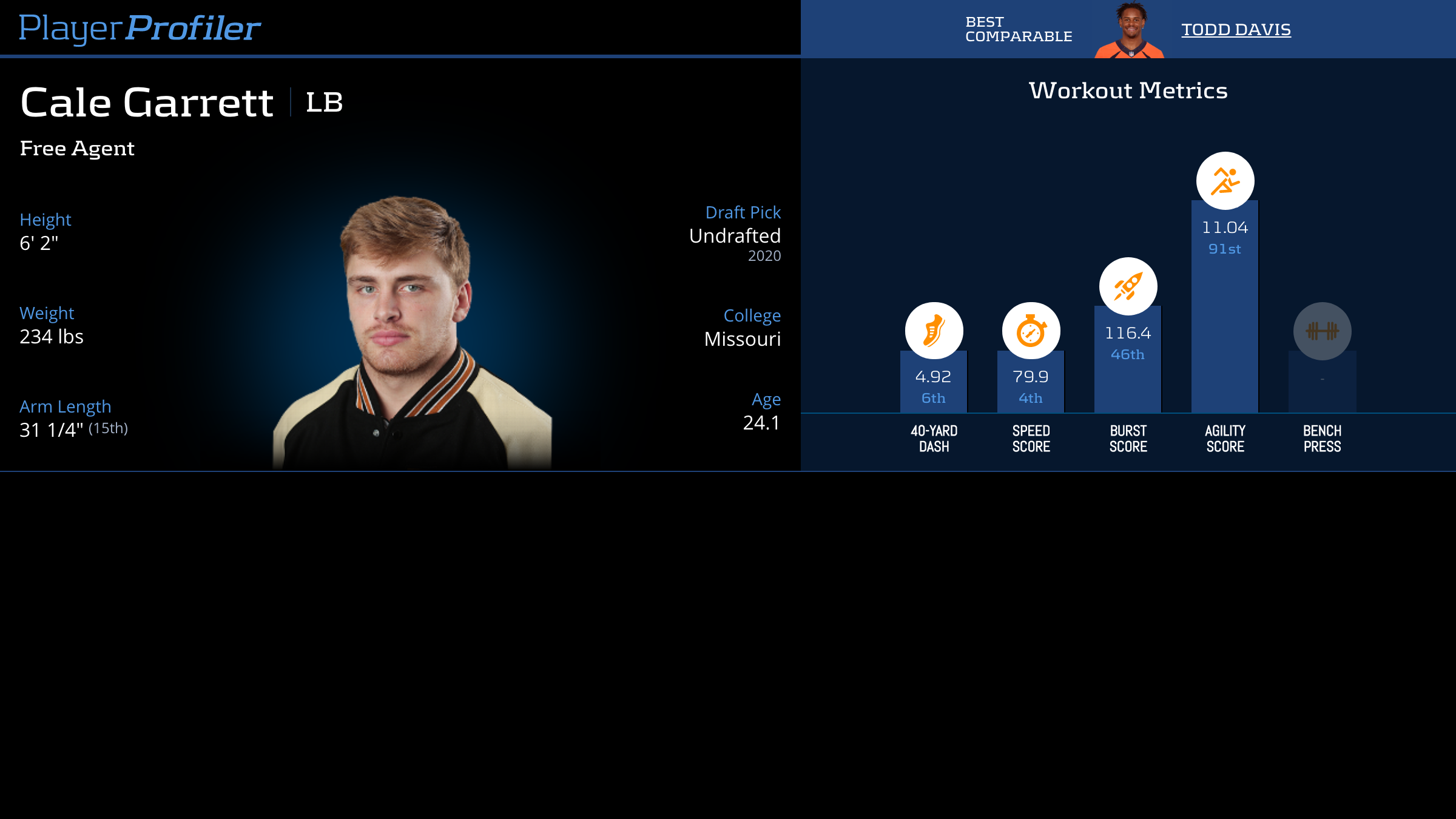 Download all Cale Garrett advanced stats and metrics with Data Analysis.