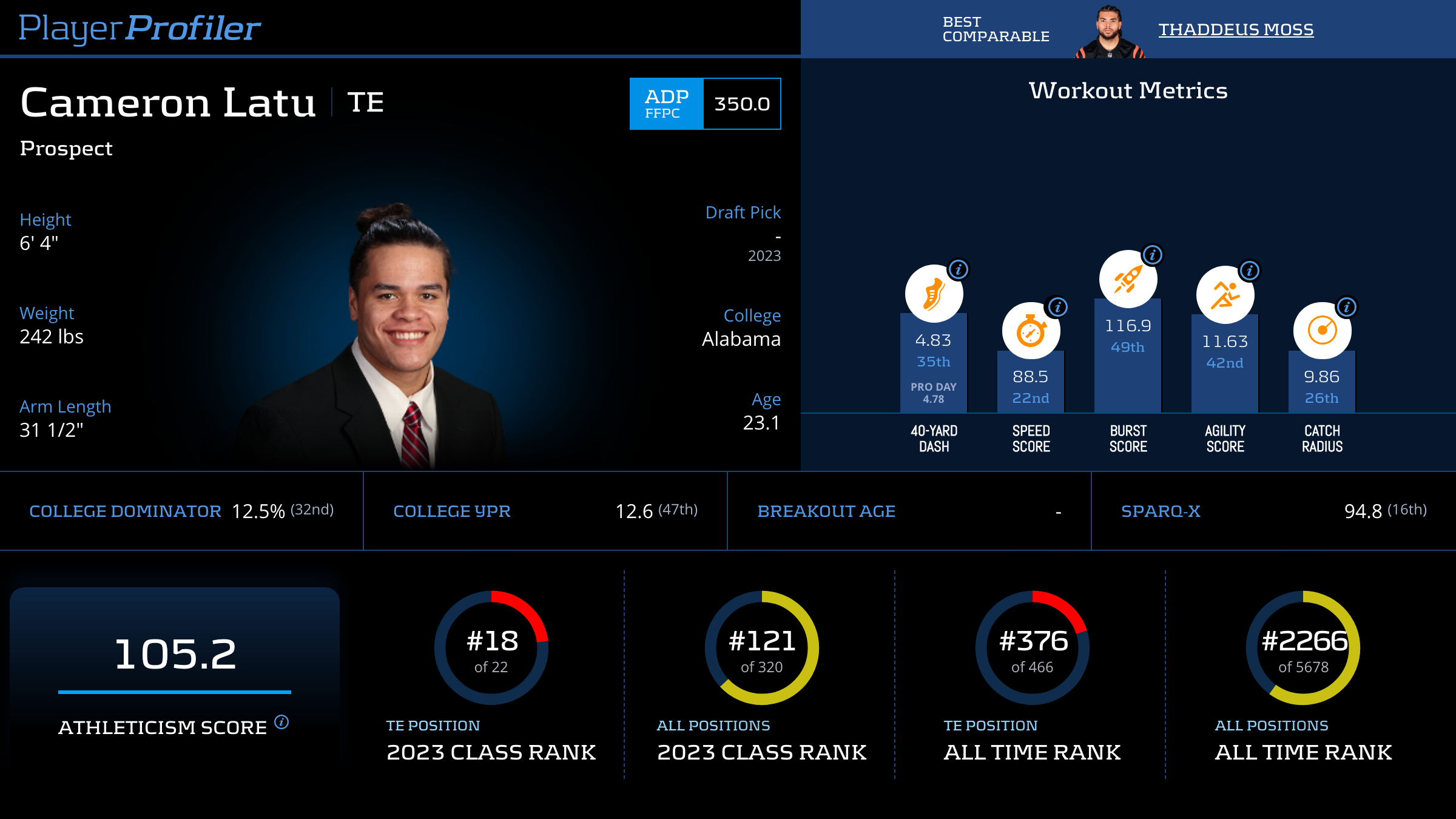Value Over Stream: Valuation scheme calculates a player's fantasy pts/game over the average waiver wire replacement in standard fantasy league formats during either the current season (or previous year during the offseason) and adjusts for positional bust rates. VOS rank in parenthesis spans all positions, enabling player comparisons across QB's, RB's, WR's, and TE's.