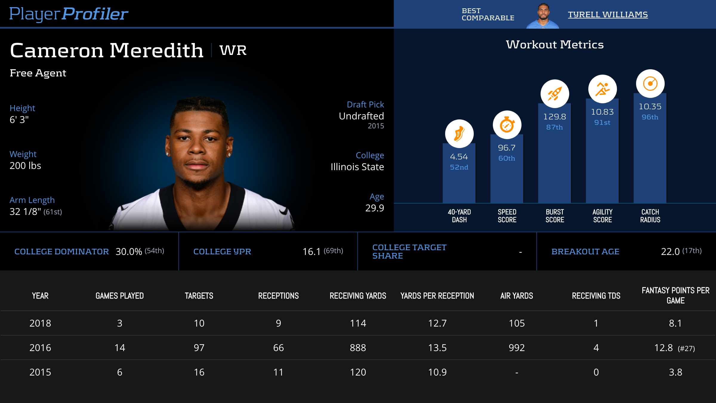 Box score statistics such as targets, yards, touchdowns, and fantasy points per target are updated the next day. Advanced stats and metrics are updated later in the week during the NFL season.