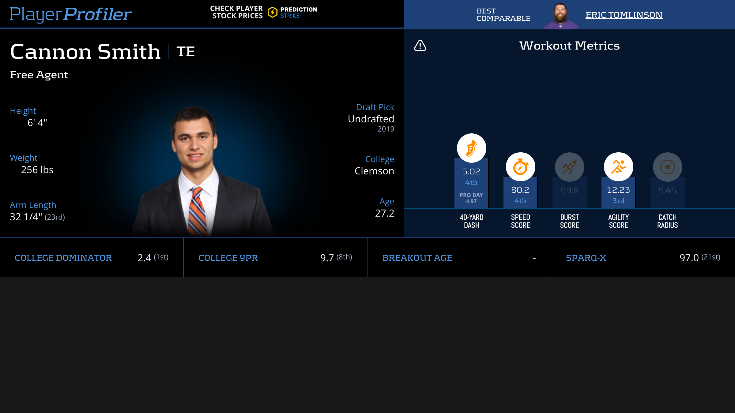 | Year Year | Games Games | Receptions Recs | Receiving Yards Rec Yds | Target Share Tgt Share | Catch Rate Catch Rate | Receiving Touchdowns Rec TDs | Special Teams Yards Special Teams | Age Age | School School |