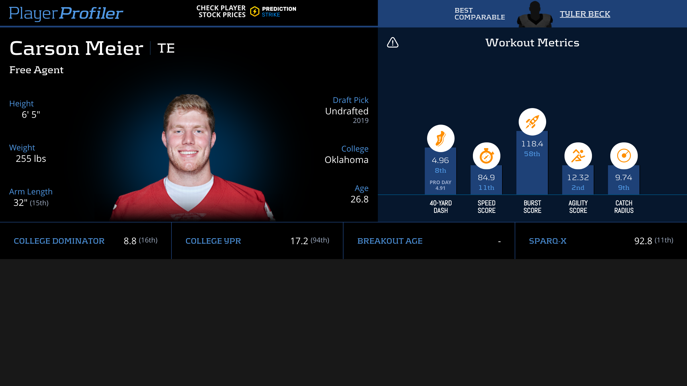 | Year Year | Games Games | Receptions Recs | Receiving Yards Rec Yds | Target Share Tgt Share | Catch Rate Catch Rate | Receiving Touchdowns Rec TDs | Special Teams Yards Special Teams | Age Age | School School |