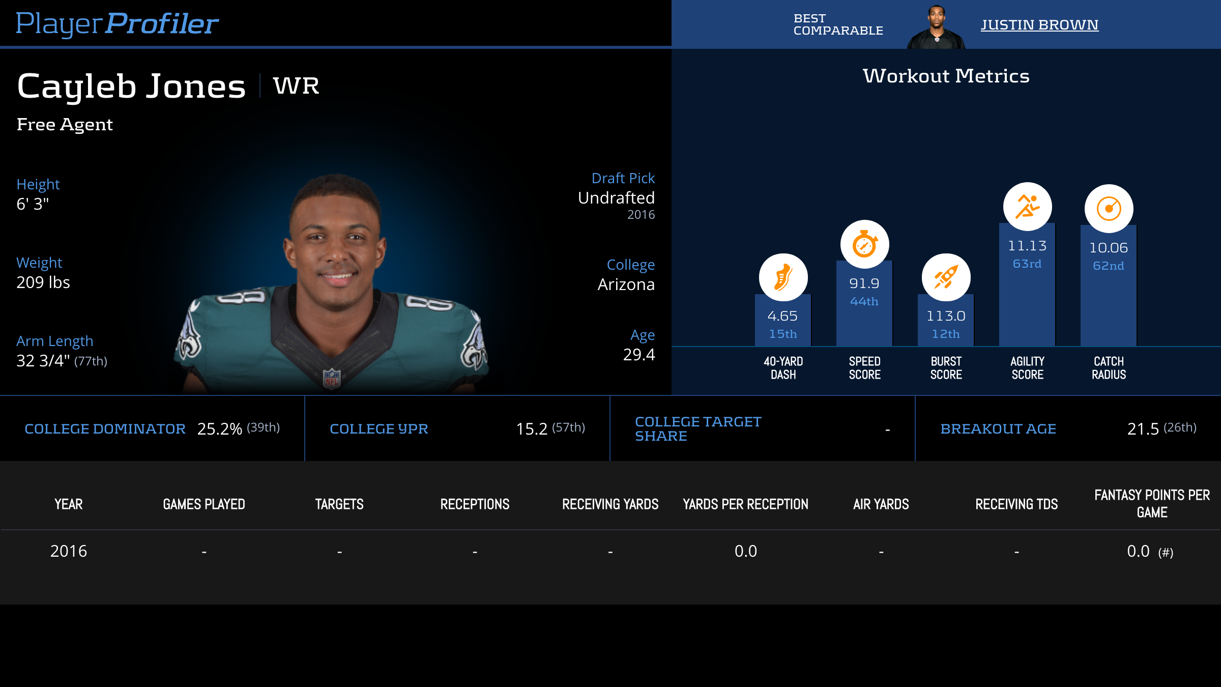 Year Games Tgts Rec Rec Yds YPR Air Yds Rec TD Fantasy Pts/Game