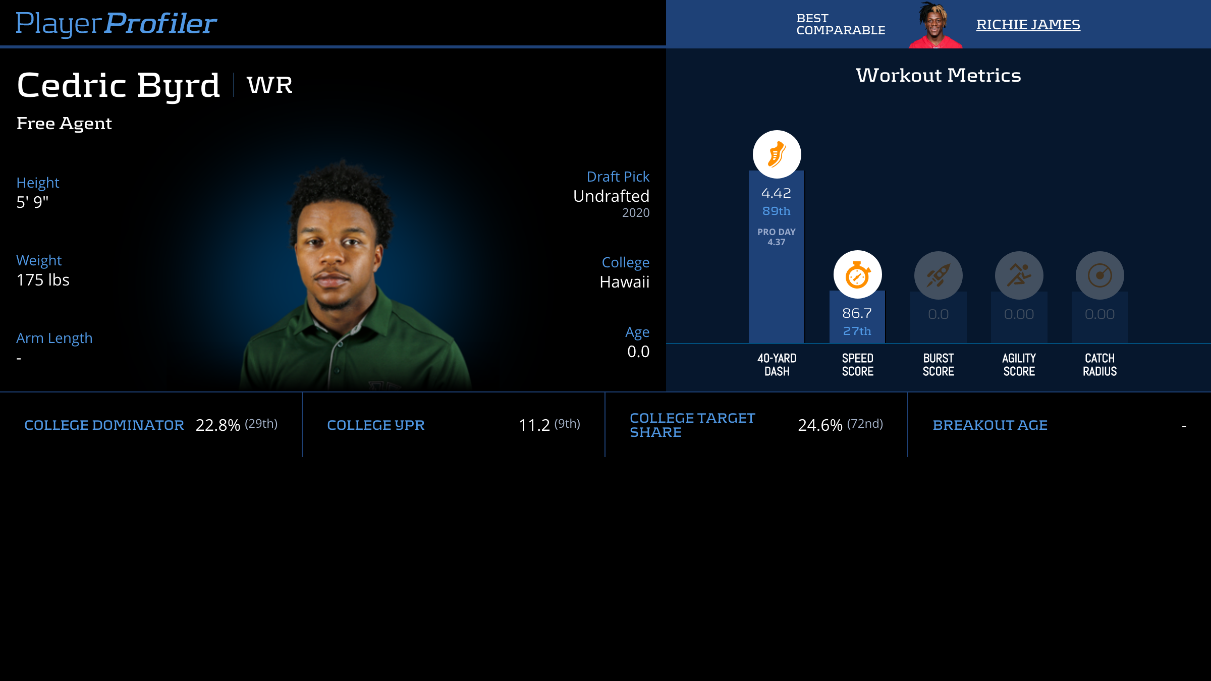 | Year Year | Games Games | Receptions Recs | Receiving Yards Rec Yds | Target Share Tgt Share | Catch Rate Catch Rate | Receiving Touchdowns Rec TDs | Special Teams Yards Special Teams | Age Age | School School |