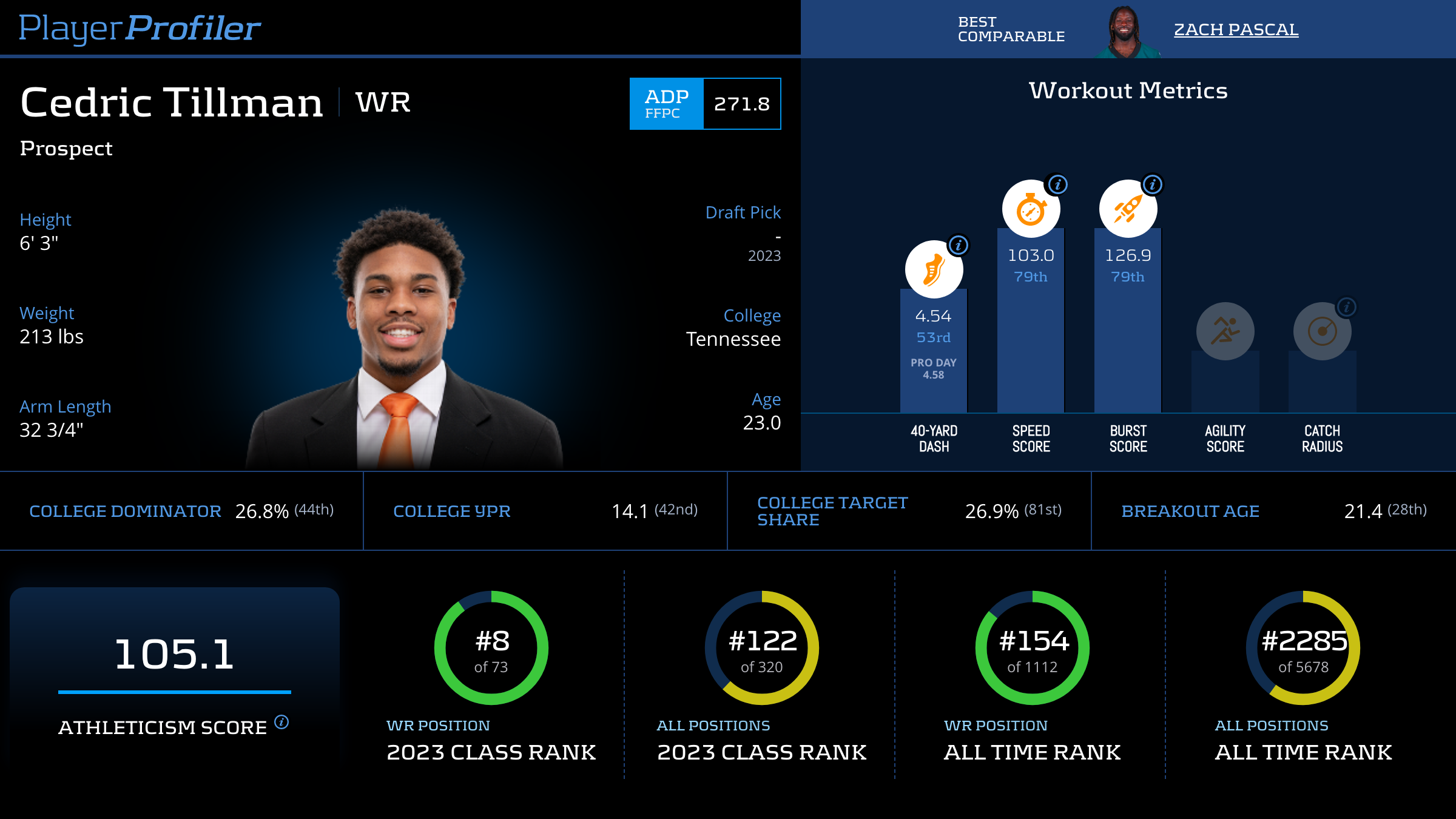 | 15 | CHI | Jaylon Johnson | 10.7% | 1 (2.5% rate) | -- | -- | -- | 0.0 (#104) |