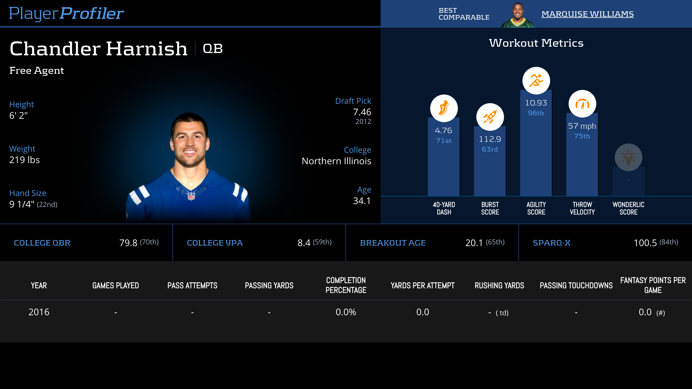 | Year Year | Games Games | Pass Attempts Pass Atts | Passing Yards Pass Yds | Yards Per Attempt YPA | Completion Percentage Comp % | Passing Touchdowns Pass TDs | Rushing Yards Rush Yds | Age Age | School School |