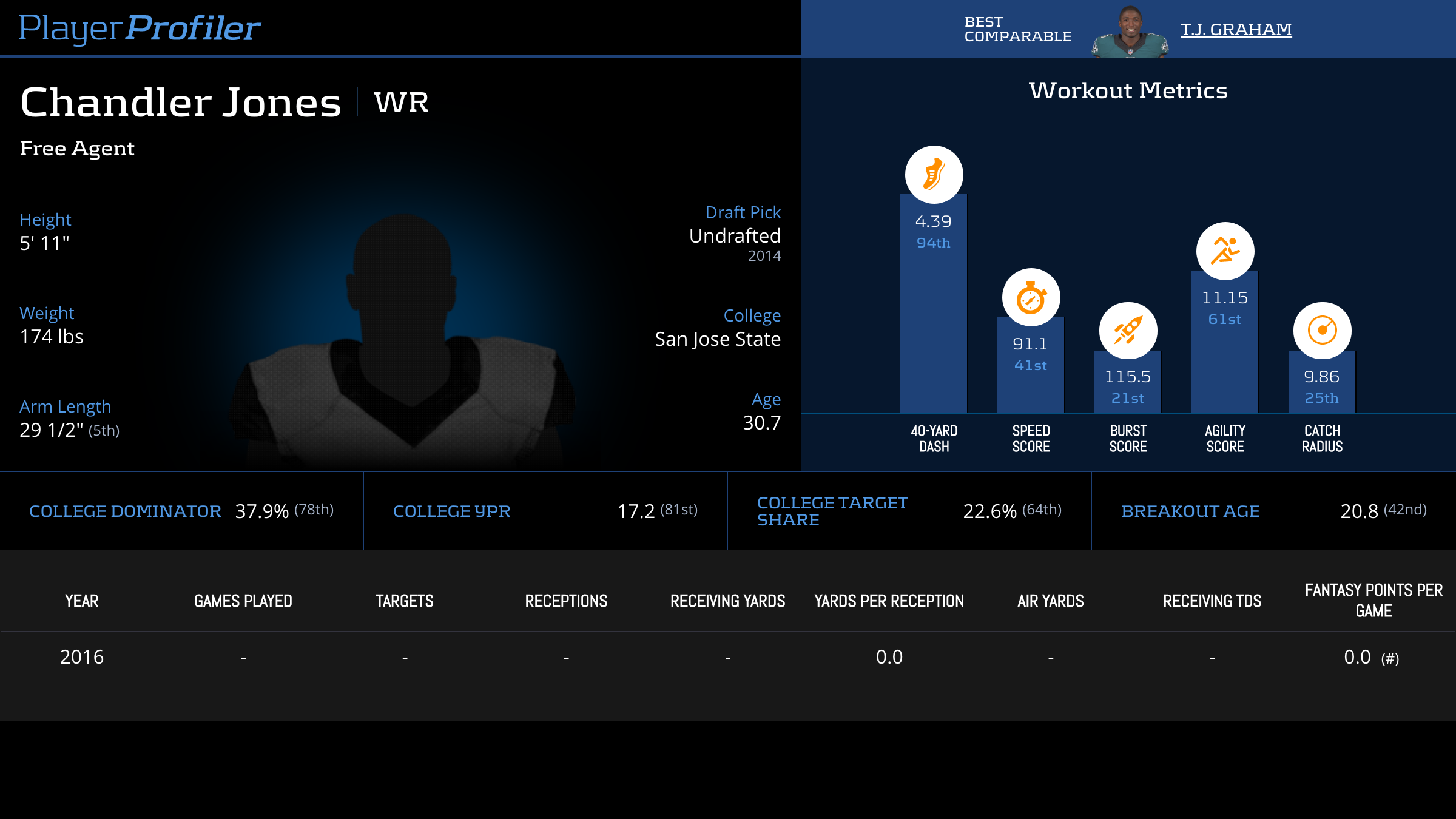 | Year Year | Games Games | Receptions Recs | Receiving Yards Rec Yds | Target Share Tgt Share | Catch Rate Catch Rate | Receiving Touchdowns Rec TDs | Special Teams Yards Special Teams | Age Age | School School |