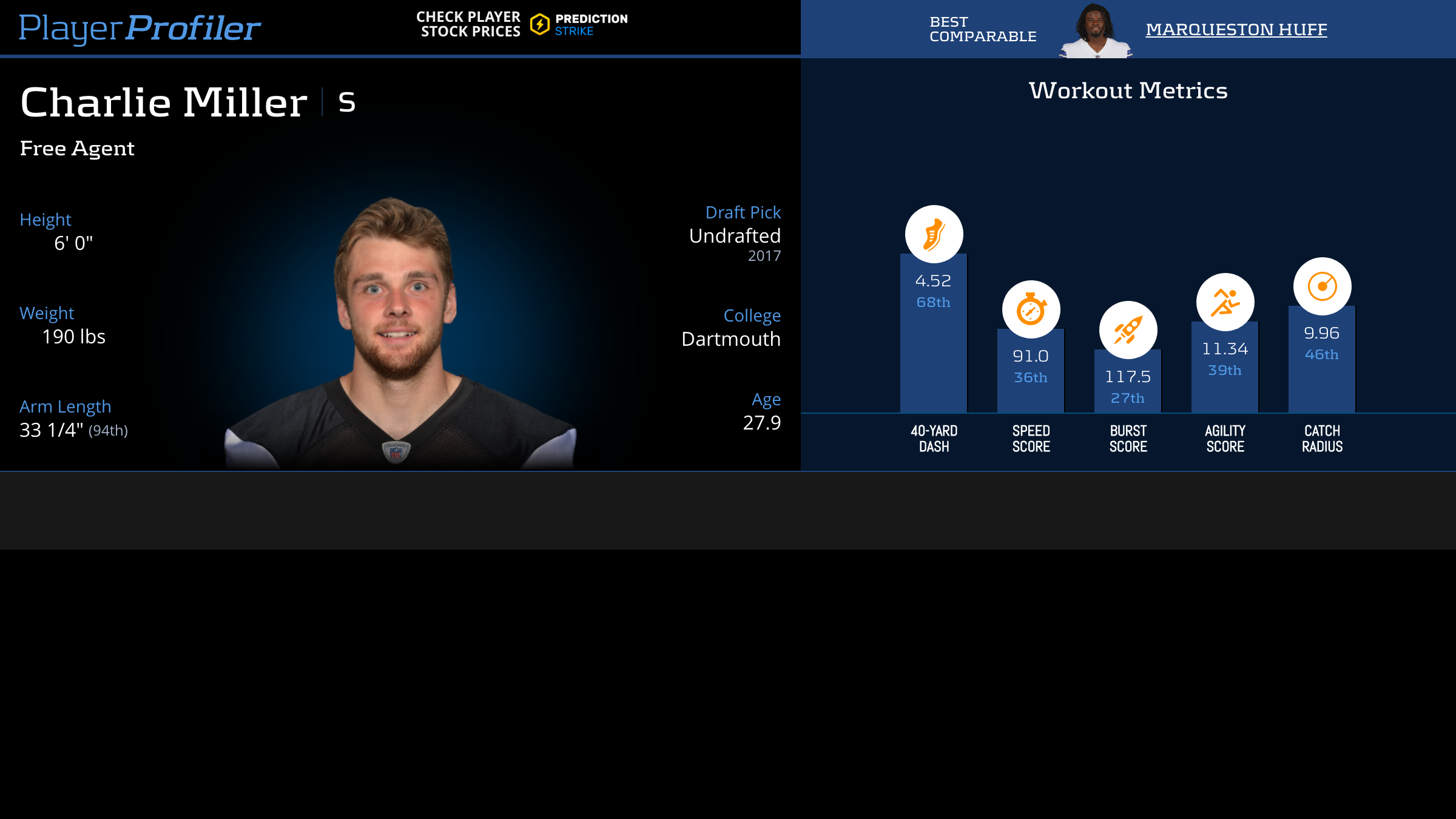 Value Over Stream: Valuation scheme calculates a player's fantasy pts/game over the average waiver wire replacement in standard fantasy league formats during either the current season (or previous year during the offseason) and adjusts for positional bust rates. VOS rank in parenthesis spans all positions, enabling player comparisons across QB's, RB's, WR's, and TE's.