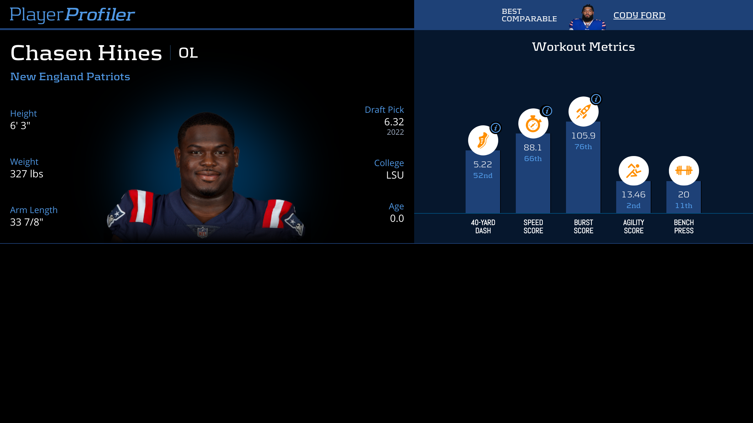 Download all Chasen Hines advanced stats and metrics with Data Analysis.