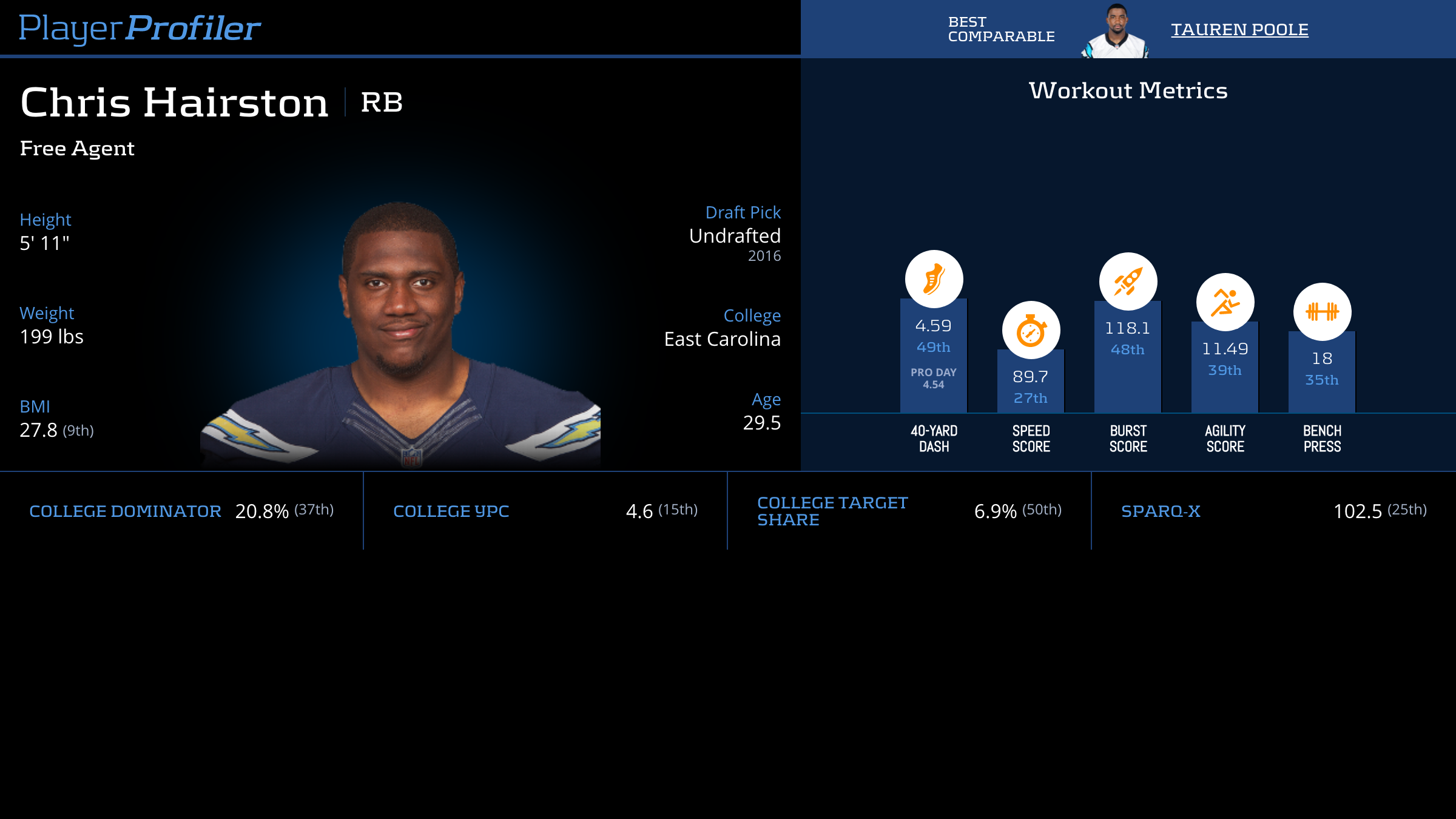 Download all Chris Hairston advanced stats and metrics with Data Analysis.