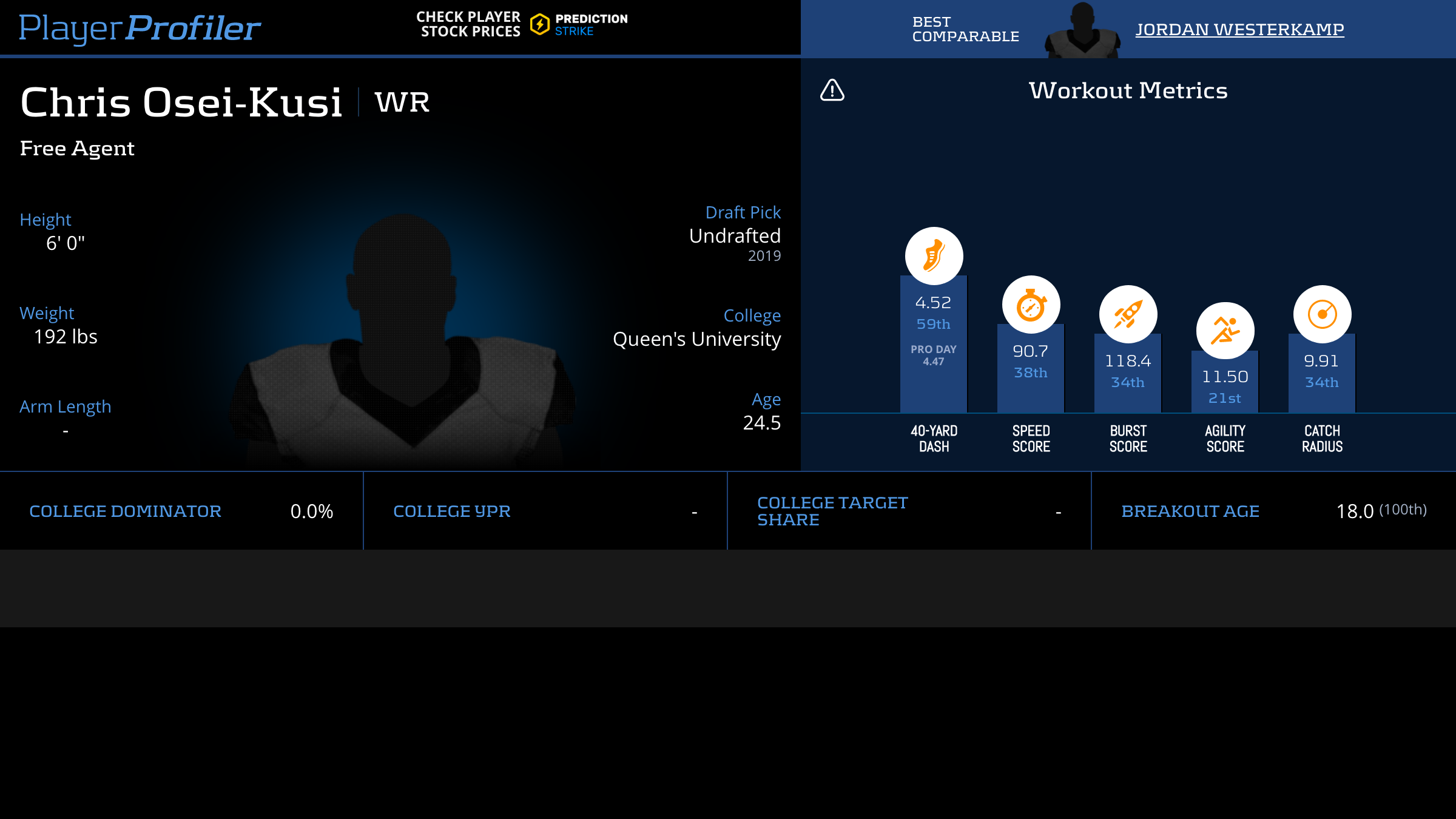 Player Popularity Index (PPI) ranks PlayerProfiler page views over the last 30 days. For example, the No. 1 PPI player page is the most frequently visited page in recent weeks.