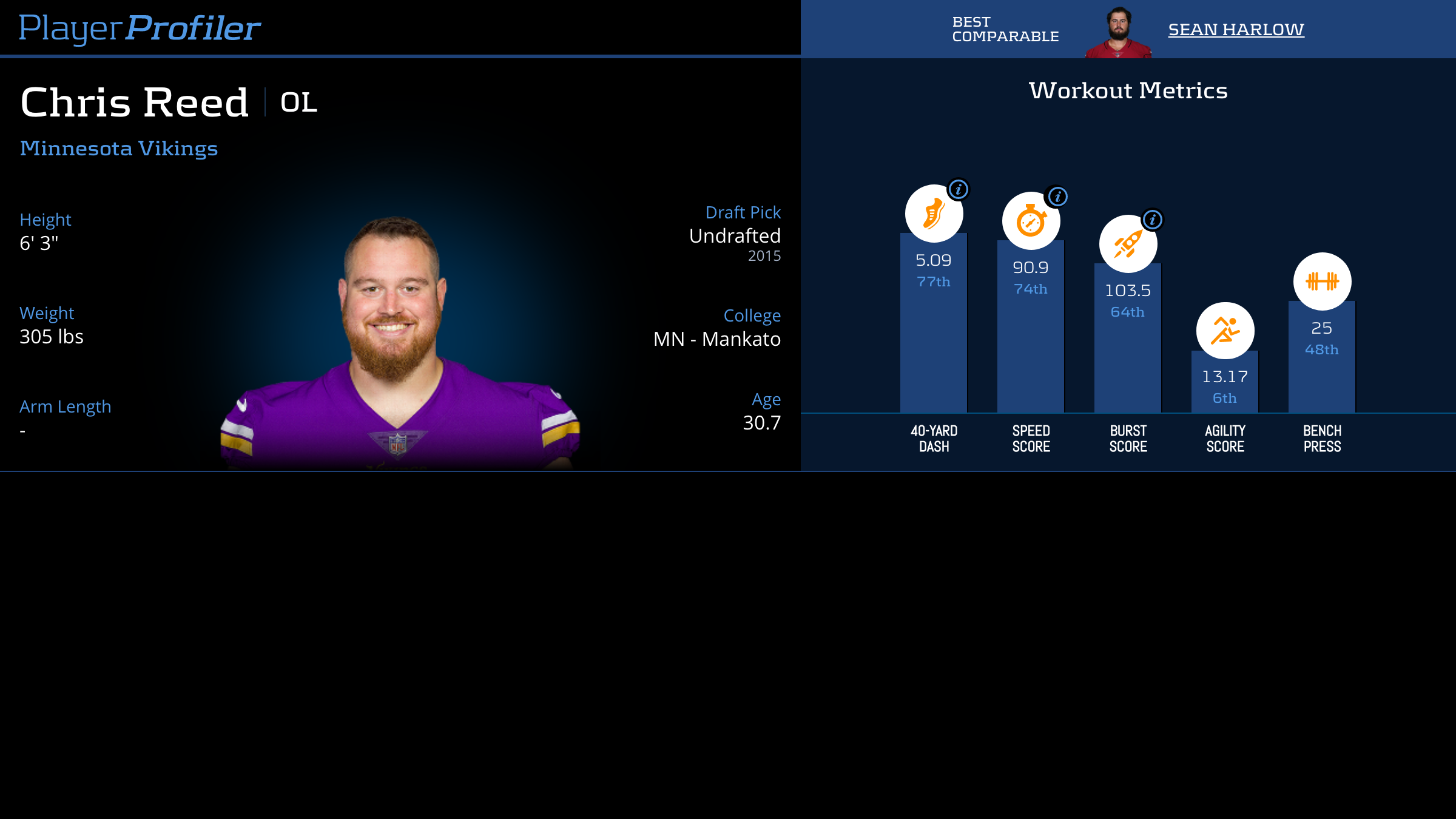 Download all Chris Reed advanced stats and metrics with Data Analysis.