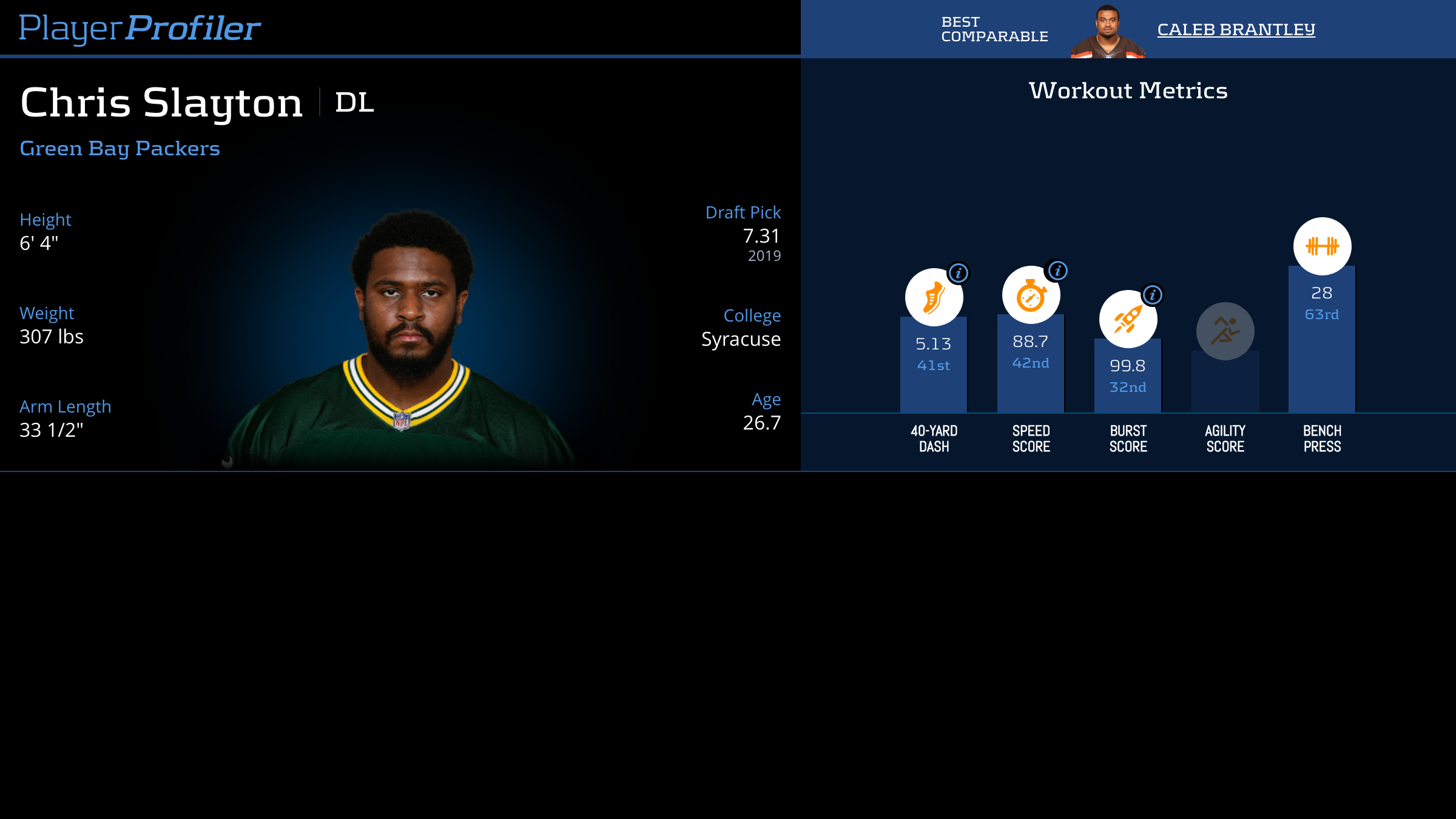 Download all Chris Slayton advanced stats and metrics with Data Analysis.