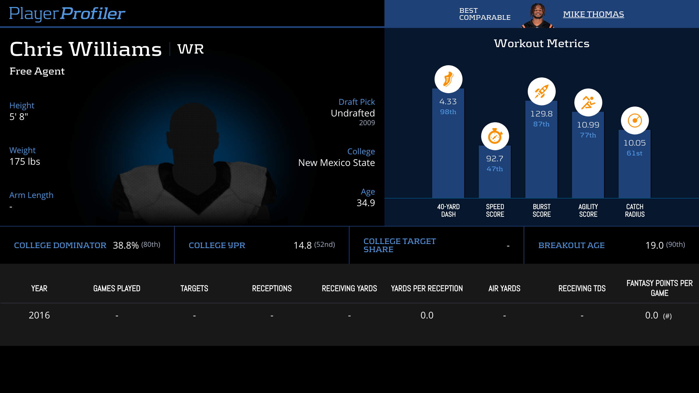 Year Games Tgts Rec Rec Yds YPR Air Yds Rec TD Fantasy Pts/Game