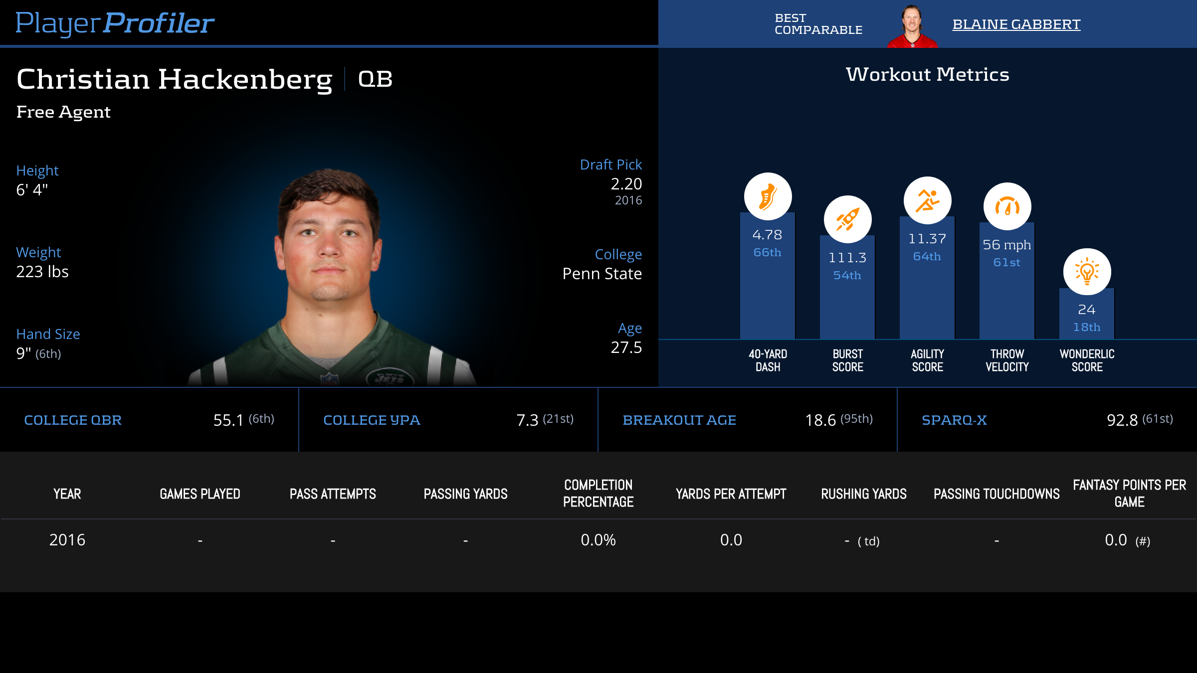 | Year Year | Games Games | Pass Attempts Pass Atts | Passing Yards Pass Yds | Yards Per Attempt YPA | Completion Percentage Comp % | Passing Touchdowns Pass TDs | Rushing Yards Rush Yds | Age Age | School School |