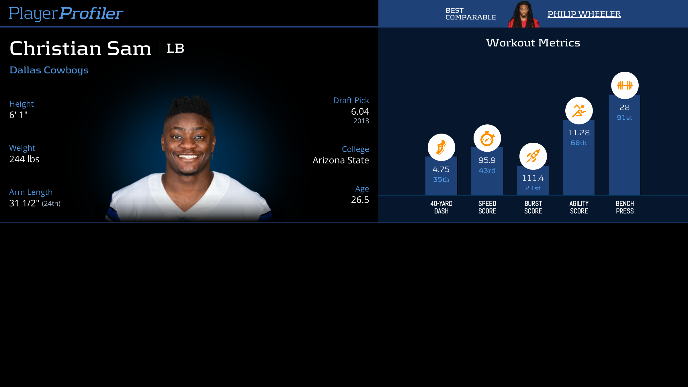 Download all Christian Sam advanced stats and metrics with Data Analysis.
