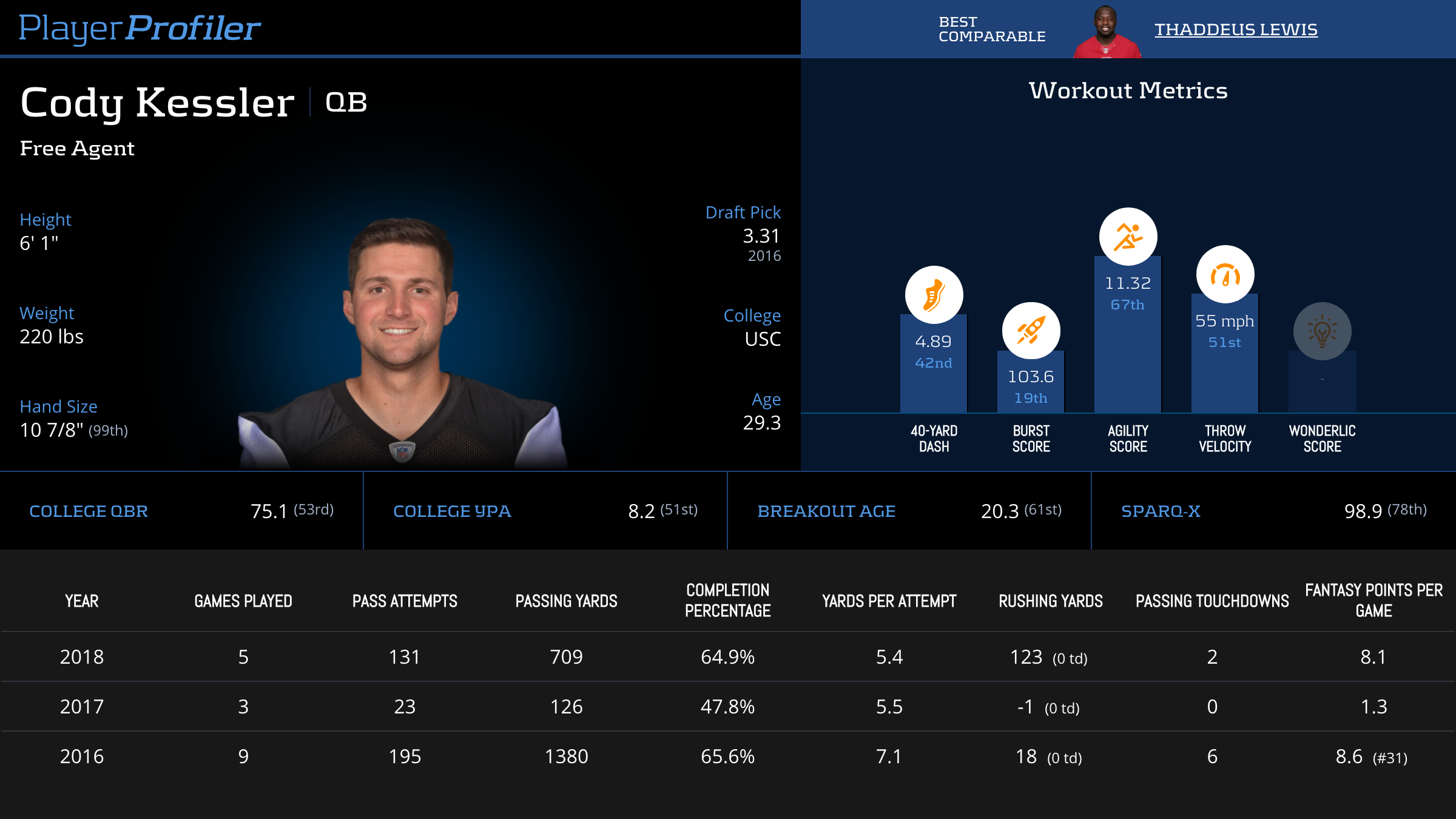 | Year Year | Games Games | Pass Attempts Pass Atts | Passing Yards Pass Yds | Yards Per Attempt YPA | Completion Percentage Comp % | Passing Touchdowns Pass TDs | Rushing Yards Rush Yds | Age Age | School School |