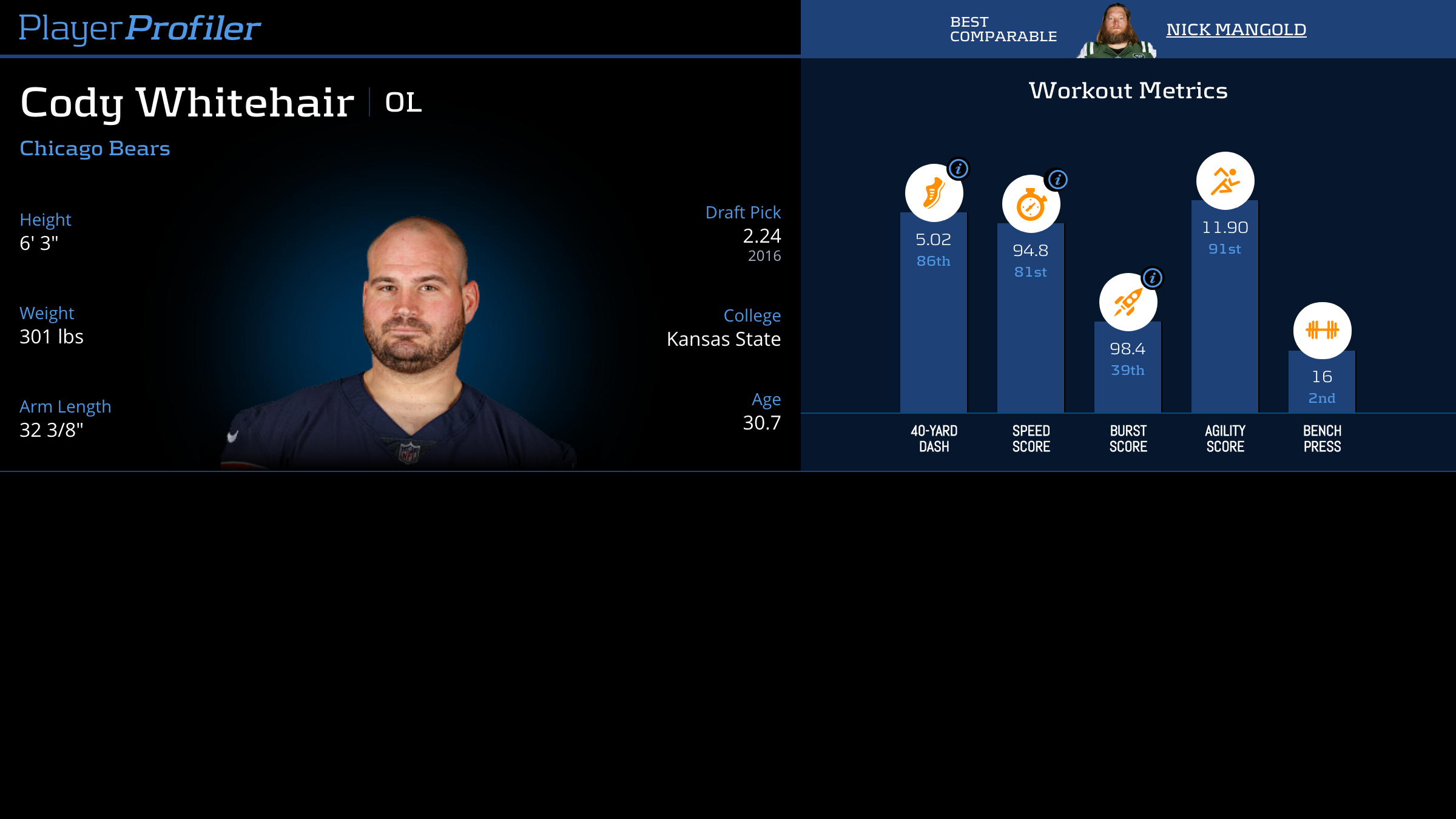Download all Cody Whitehair advanced stats and metrics with Data Analysis.