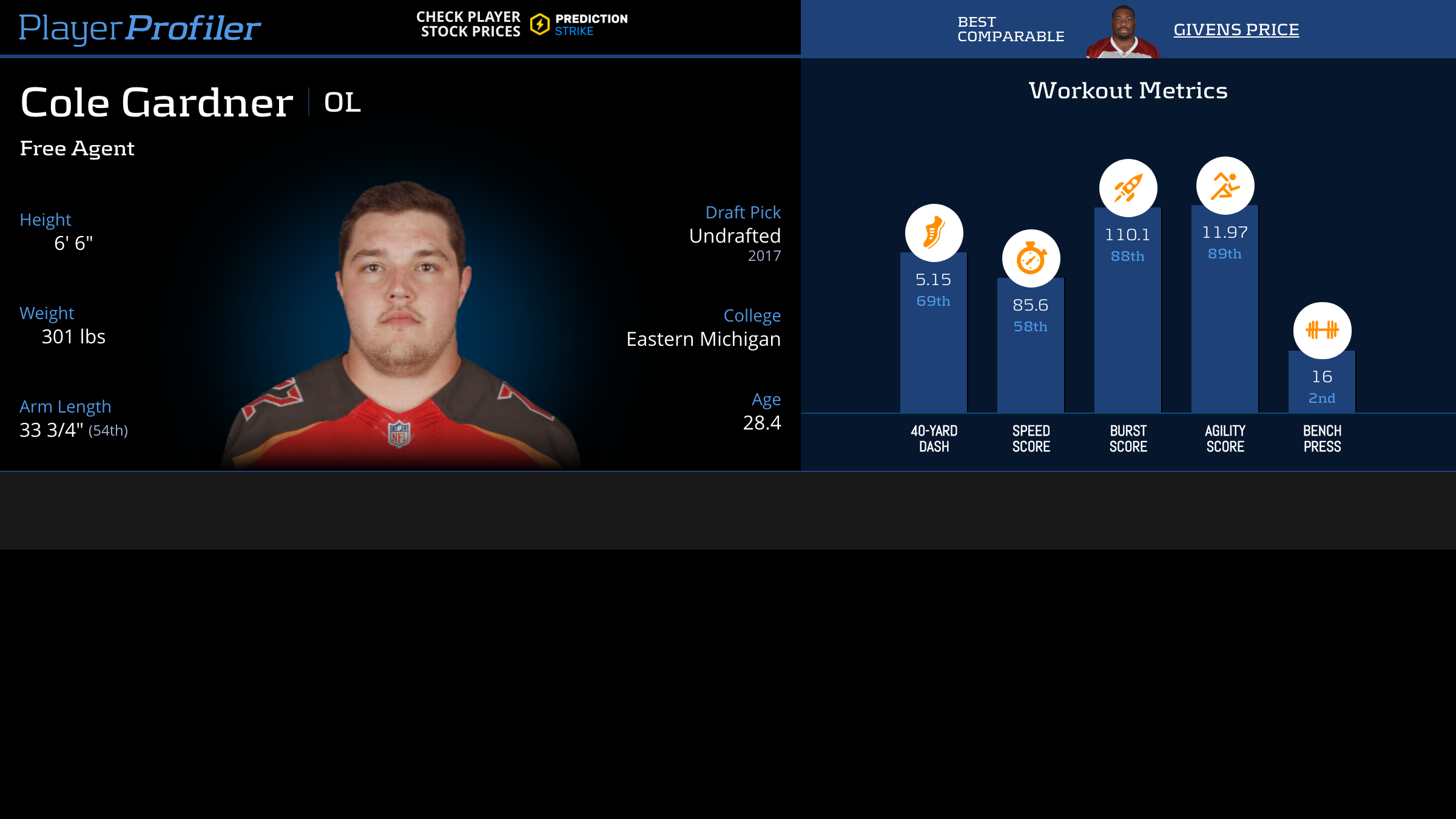 Download all Cole Gardner advanced stats and metrics with Data Analysis.