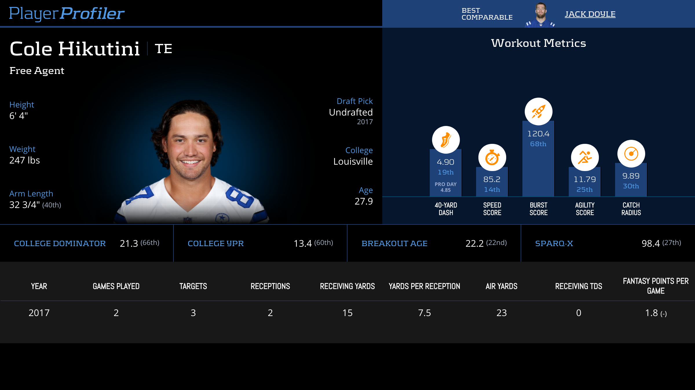 | Year Year | Games Games | Receptions Recs | Receiving Yards Rec Yds | Target Share Tgt Share | Catch Rate Catch Rate | Receiving Touchdowns Rec TDs | Special Teams Yards Special Teams | Age Age | School School |