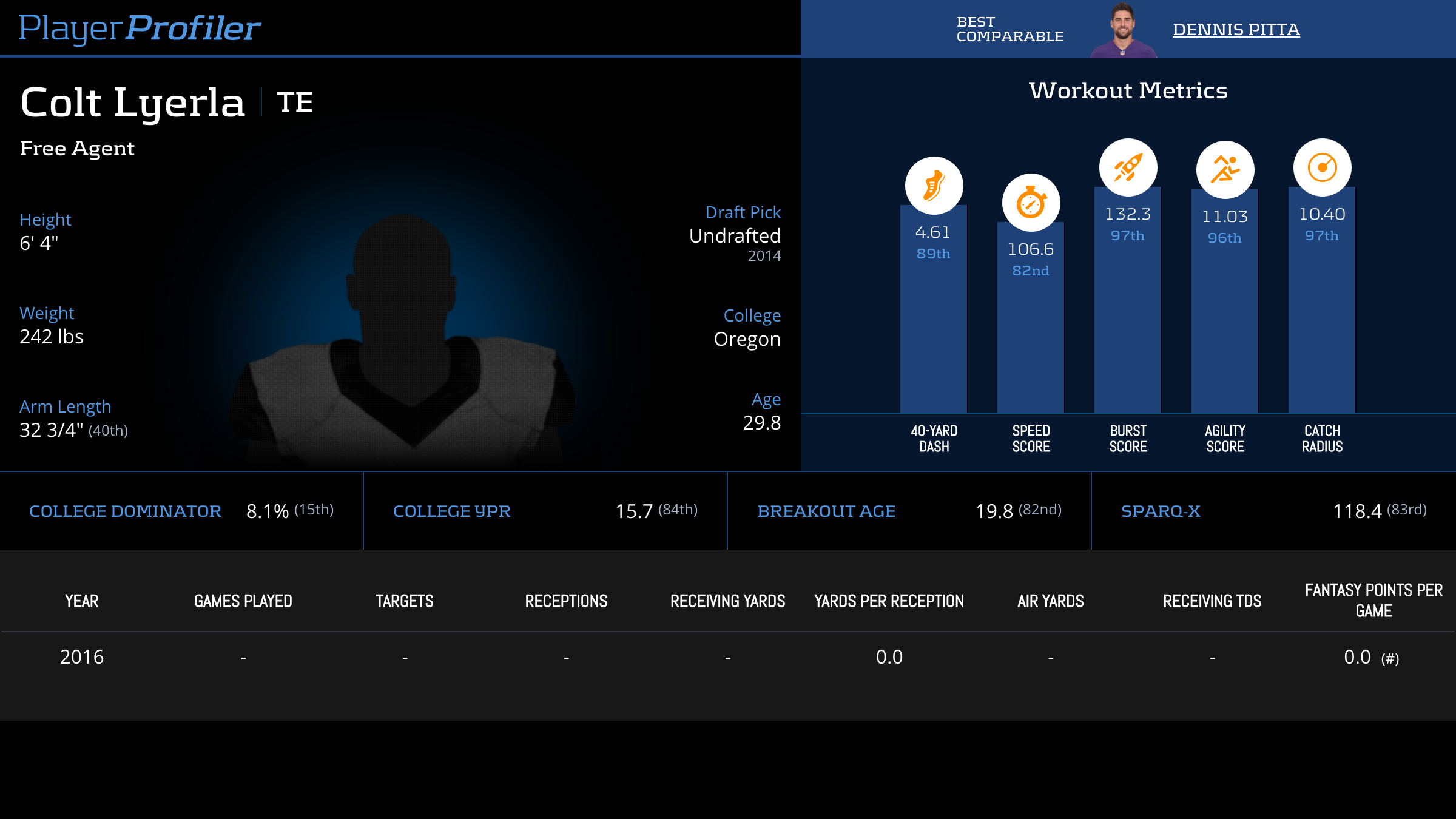 | Year Year | Games Games | Receptions Recs | Receiving Yards Rec Yds | Target Share Tgt Share | Catch Rate Catch Rate | Receiving Touchdowns Rec TDs | Special Teams Yards Special Teams | Age Age | School School |