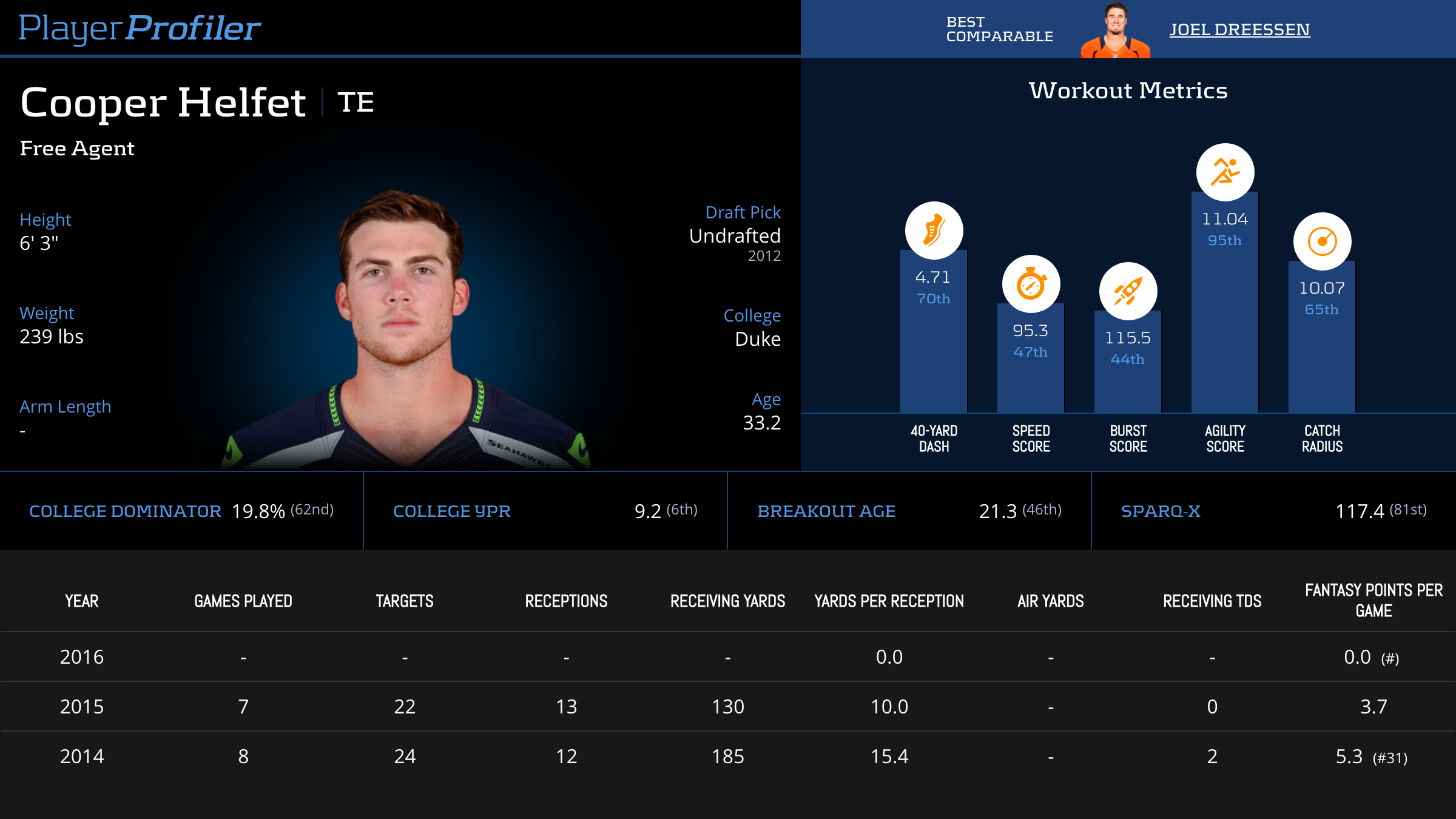 Box score statistics such as targets, yards, touchdowns, and fantasy points per target are updated the next day. Advanced stats and metrics are updated later in the week during the NFL season.