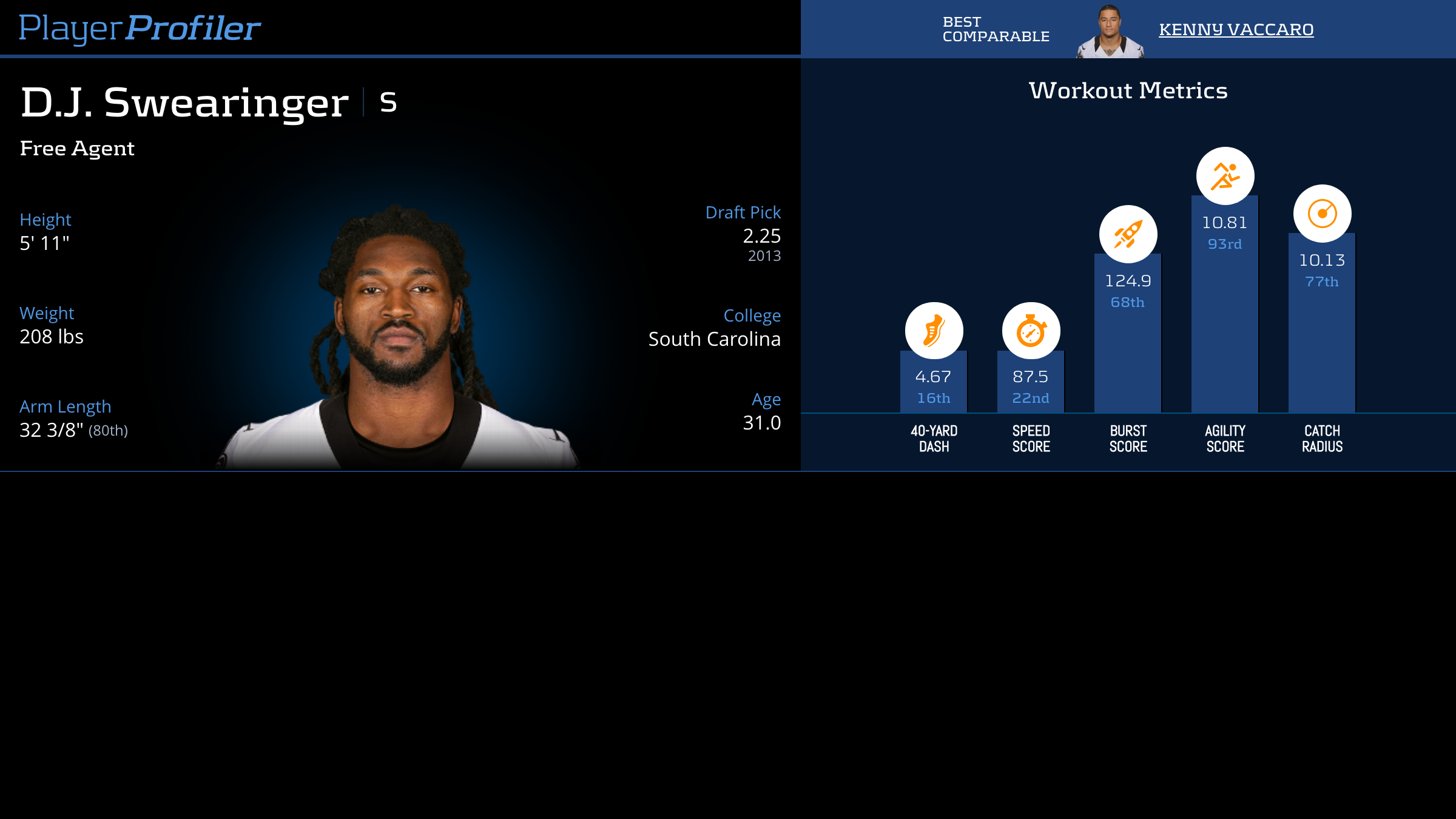 Value Over Stream: Valuation scheme calculates a player's fantasy pts/game over the average waiver wire replacement in standard fantasy league formats during either the current season (or previous year during the offseason) and adjusts for positional bust rates. VOS rank in parenthesis spans all positions, enabling player comparisons across QB's, RB's, WR's, and TE's.
