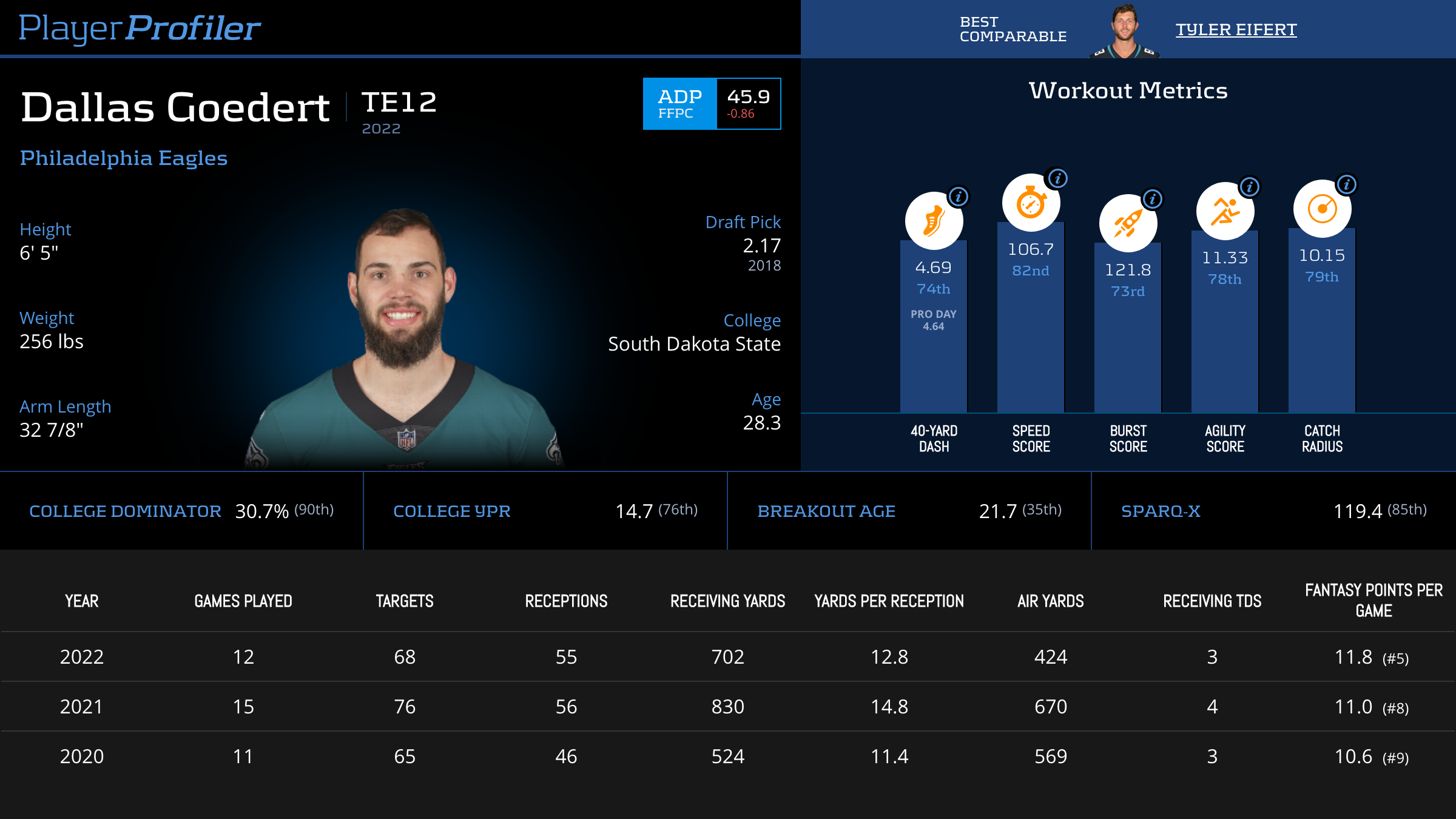 | 11 | DET | 91.5% | 30 (100.0% rate) | 5 | 2 | 24 (41 air) | 4.4 (#32) |