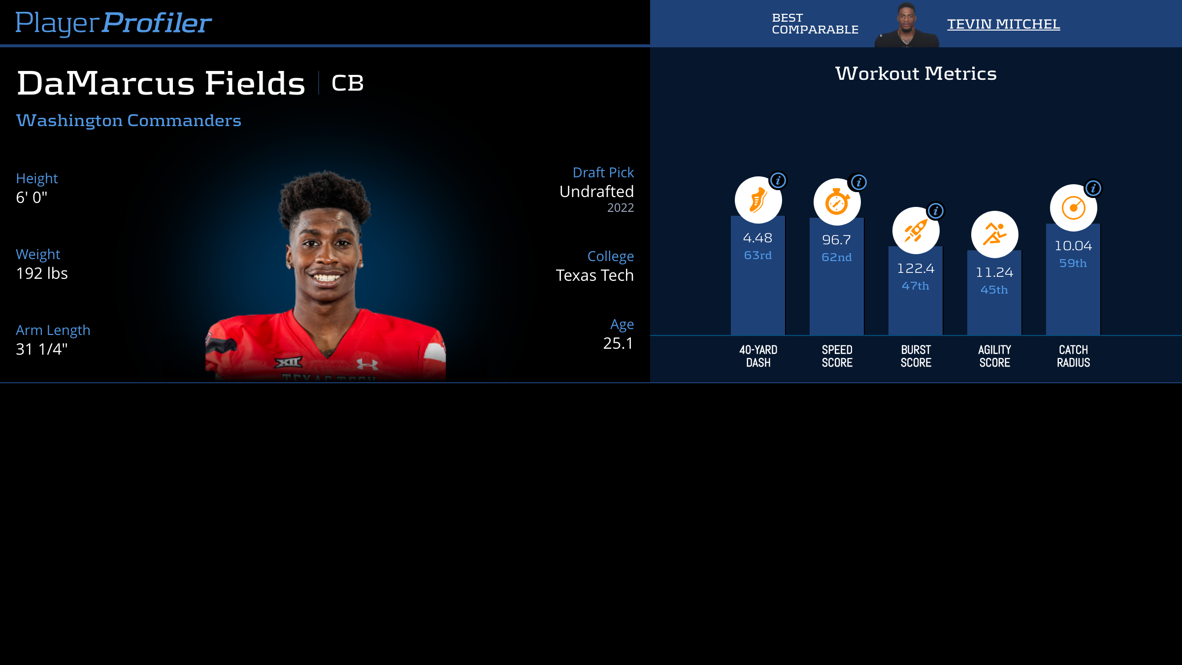 Download all DaMarcus Fields advanced stats and metrics with Data Analysis.
