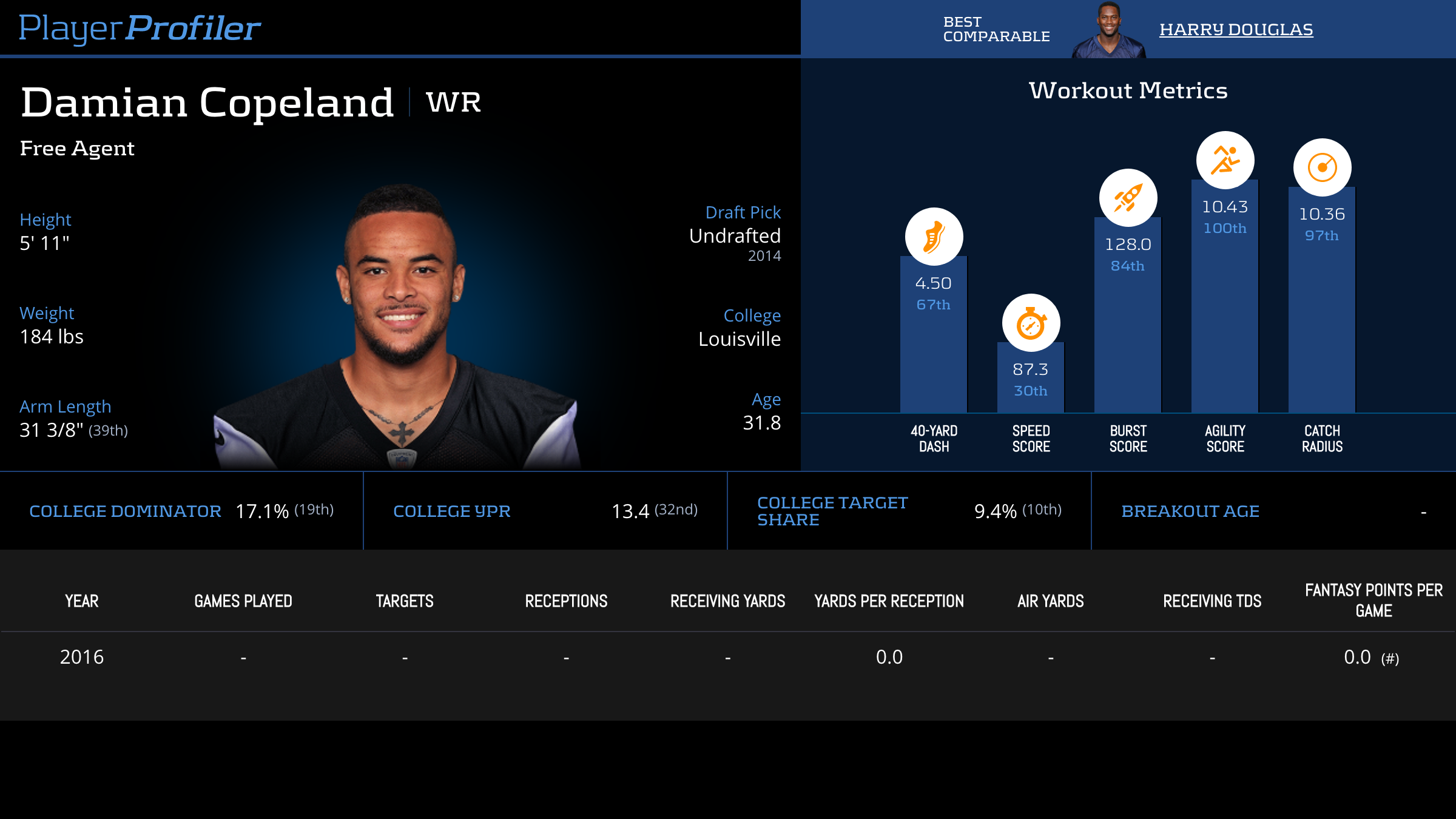 | Year Year | Games Games | Receptions Recs | Receiving Yards Rec Yds | Target Share Tgt Share | Catch Rate Catch Rate | Receiving Touchdowns Rec TDs | Special Teams Yards Special Teams | Age Age | School School |