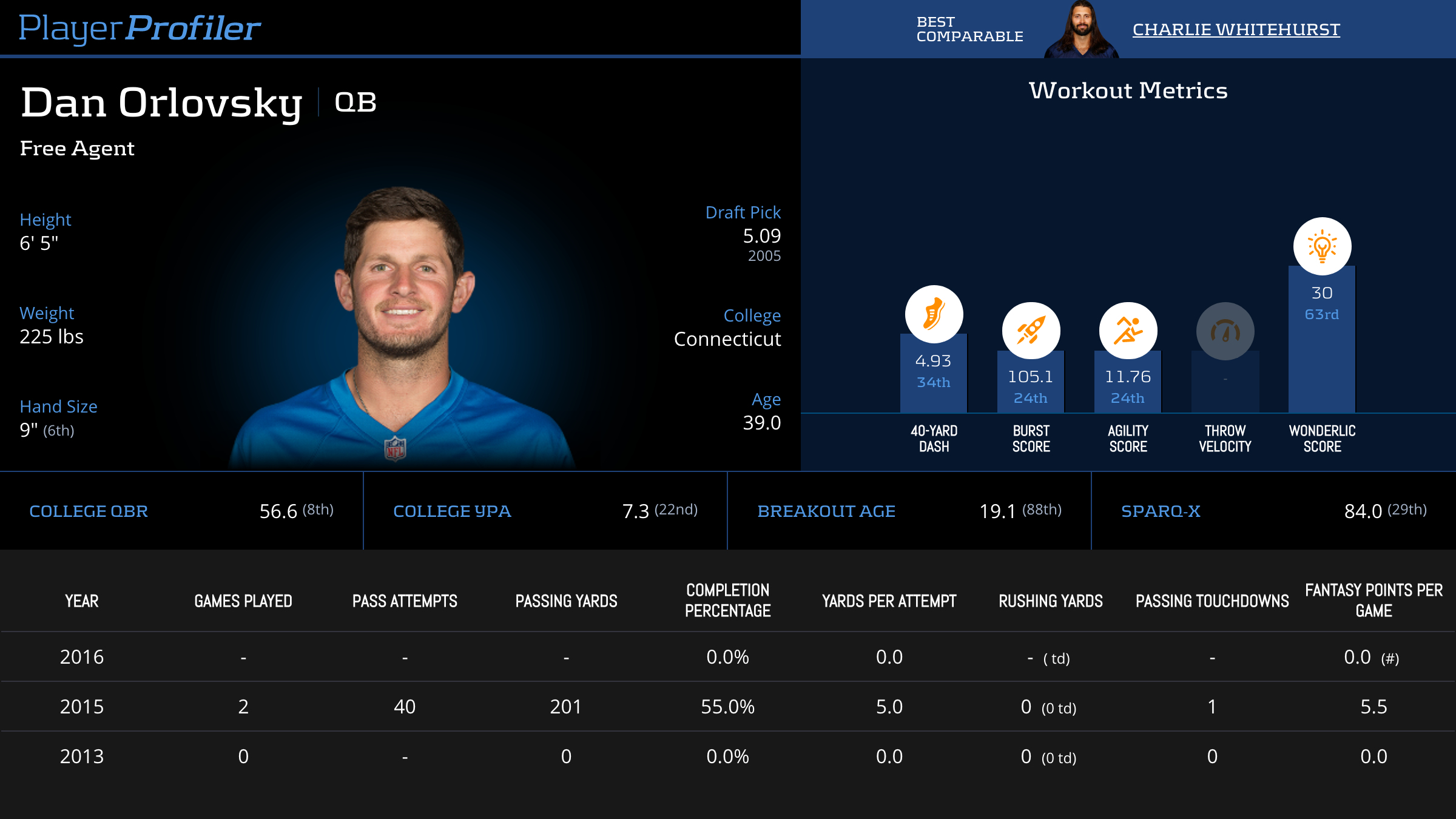 | 5 | ARI | -- | 55.3% | 191 | 5.0 | 1 (1 int) | -- | 0 tds | 10.6 |