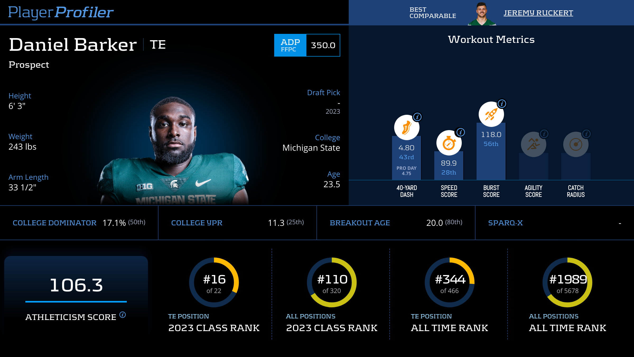 | Year Year | Games Games | Receptions Recs | Receiving Yards Rec Yds | Target Share Tgt Share | Catch Rate Catch Rate | Receiving Touchdowns Rec TDs | Special Teams Yards Special Teams | Age Age | School School |