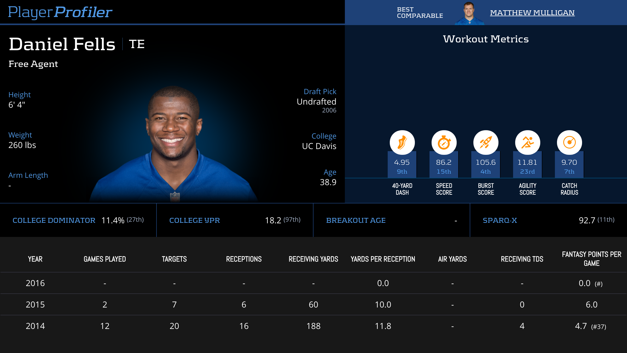 Box score statistics such as targets, yards, touchdowns, and fantasy points per target are updated the next day. Advanced stats and metrics are updated later in the week during the NFL season.