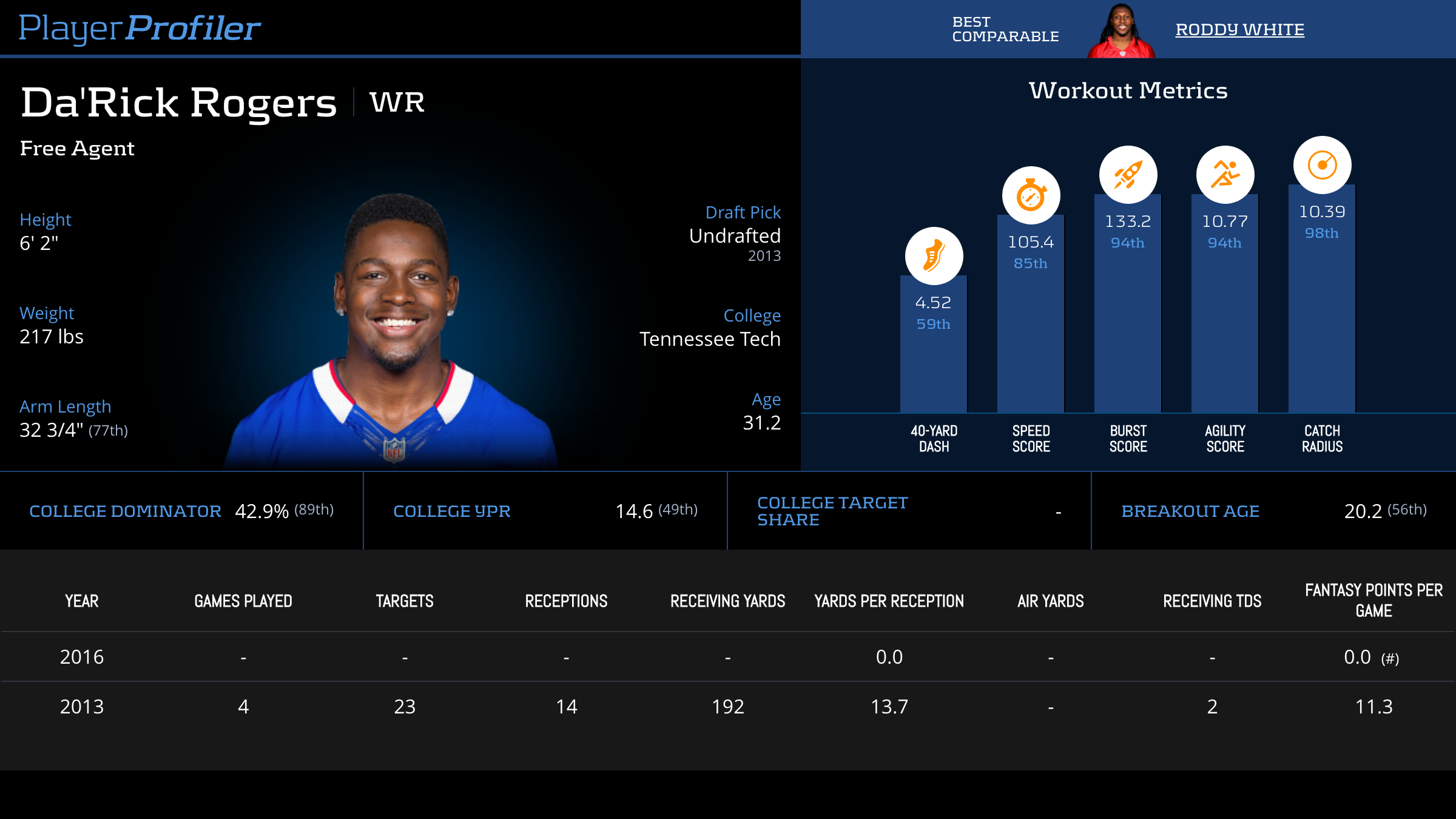 Year Games Tgts Rec Rec Yds YPR Air Yds Rec TD Fantasy Pts/Game
