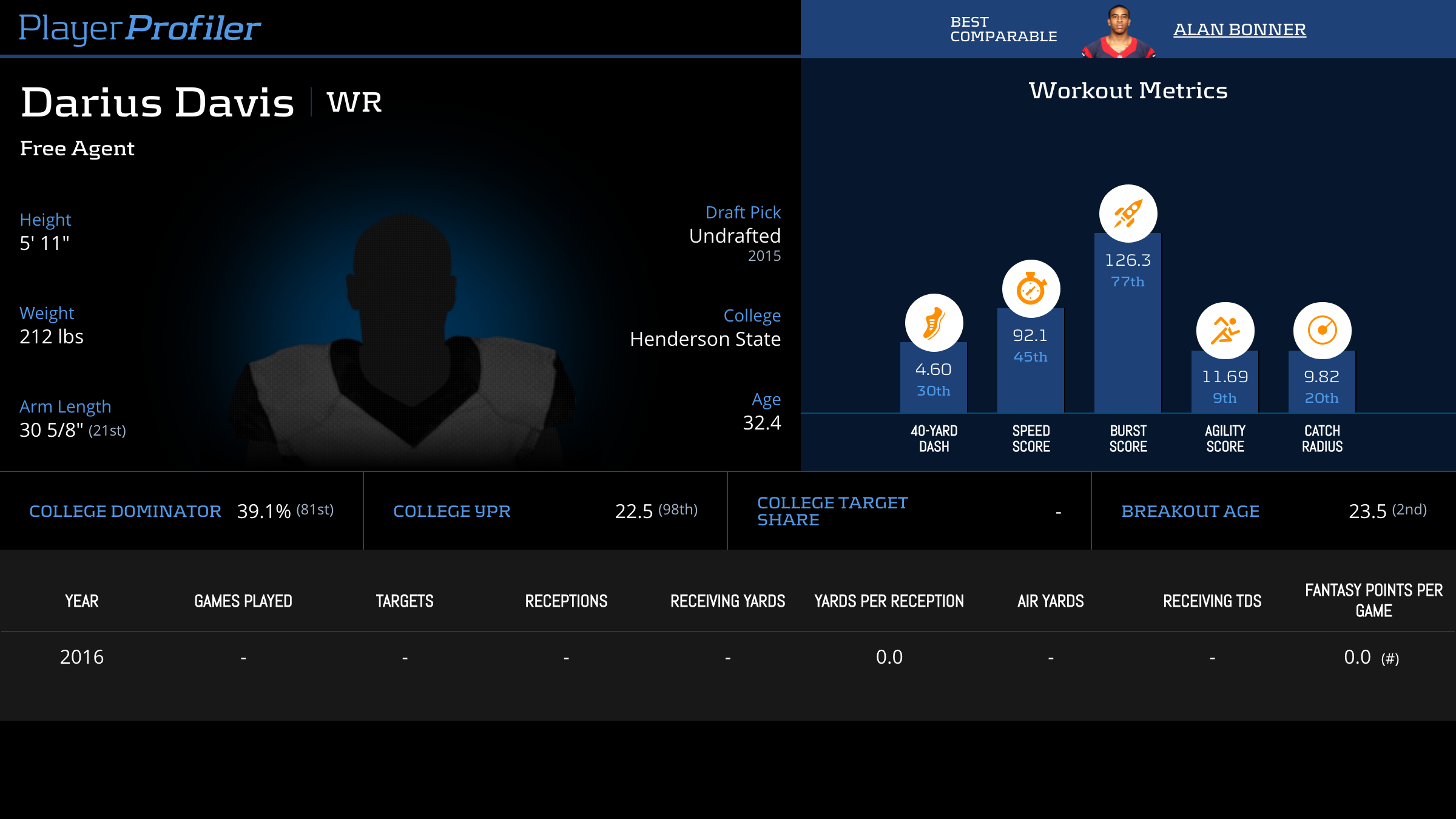 Year Games Tgts Rec Rec Yds YPR Air Yds Rec TD Fantasy Pts/Game