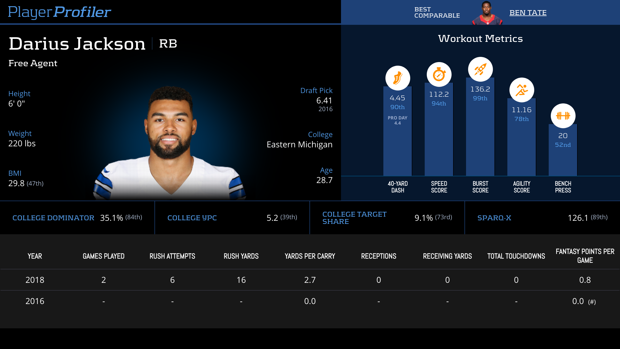 | 17 | NYG | 22.7% | 6 (2 rz) | 3 | 1 | -- | 16 | -- | 1.6 (##70) |
