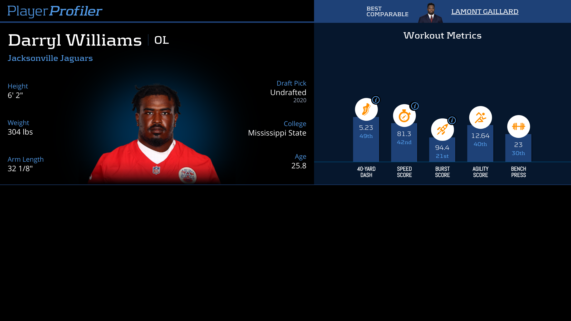 Download all Darryl Williams advanced stats and metrics with Data Analysis.