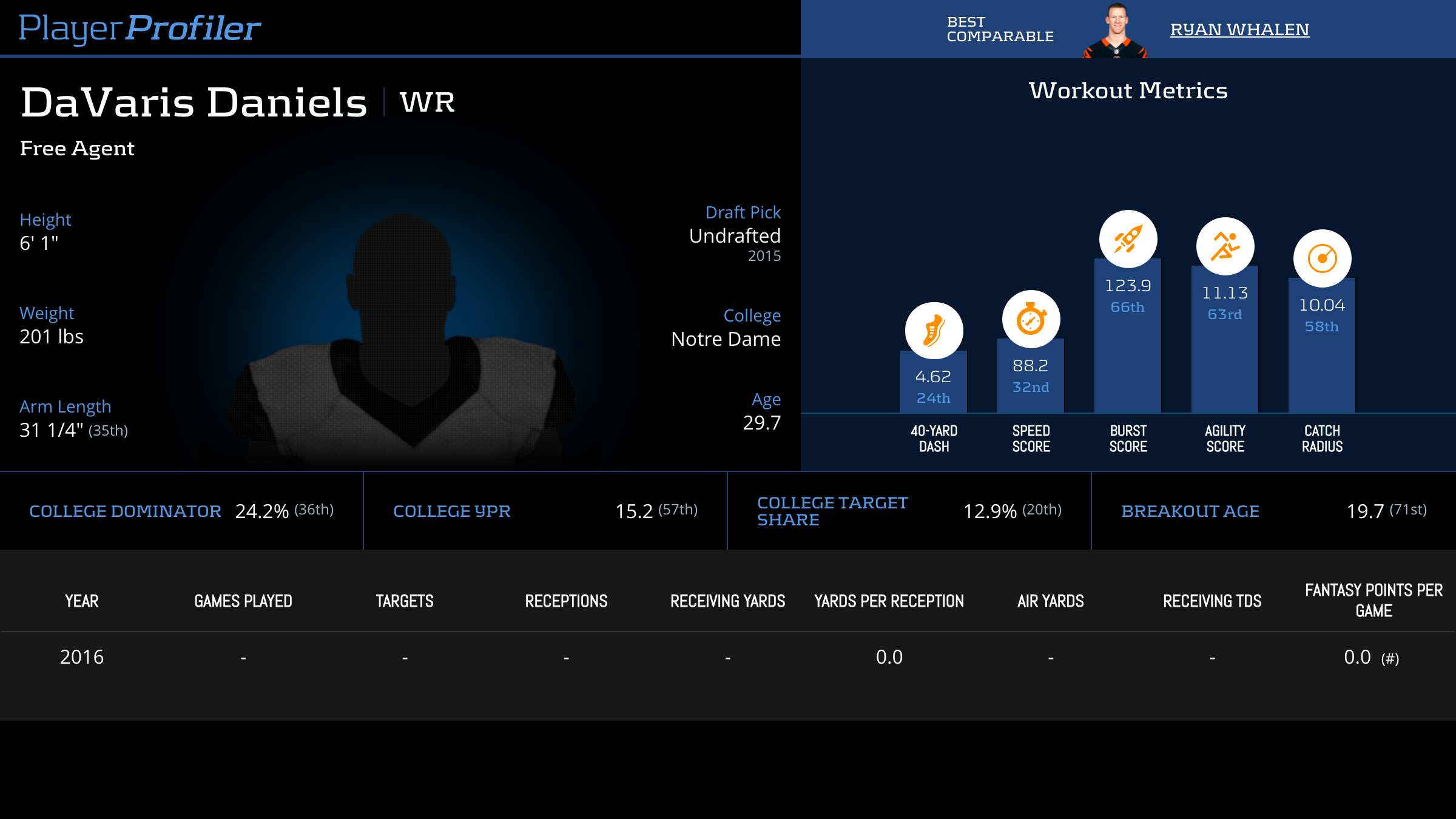 | Year Year | Games Games | Receptions Recs | Receiving Yards Rec Yds | Target Share Tgt Share | Catch Rate Catch Rate | Receiving Touchdowns Rec TDs | Special Teams Yards Special Teams | Age Age | School School |