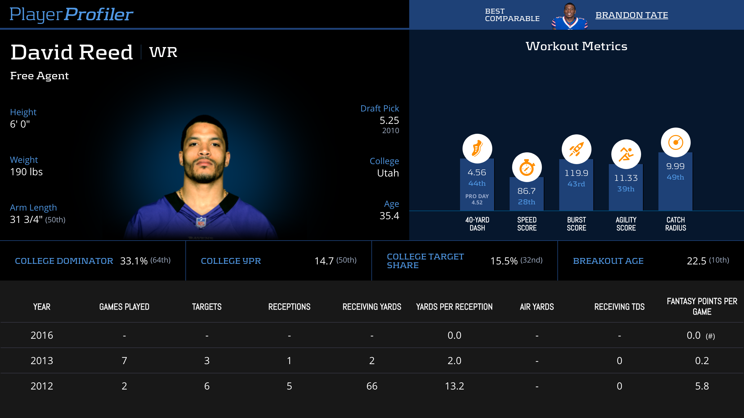 Box score statistics such as targets, yards, touchdowns, and fantasy points per target are updated the next day. Advanced stats and metrics are updated later in the week during the NFL season.