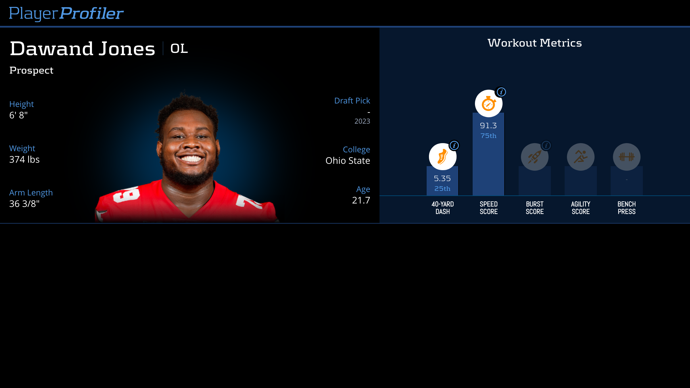 Download all Dawand Jones advanced stats and metrics with Data Analysis.